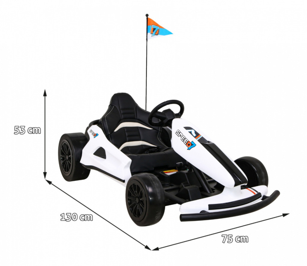 Gokart Speed 7 Drift King na akumulator dla dzieci Biały + Funkcja driftu + Sportowe siedzenie + 2 Prędkości + EVA