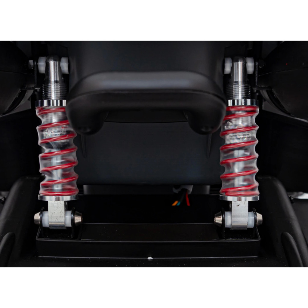 Die luftgefüllten Räder verfügen über ein hochwertiges und verschleißfestes Profil. Dank der hohen Federung ist das Fahrzeug für anspruchsvolles und unebenes Gelände geeignet. Außerdem kommt es mit jedem Untergrund gut zurecht.
