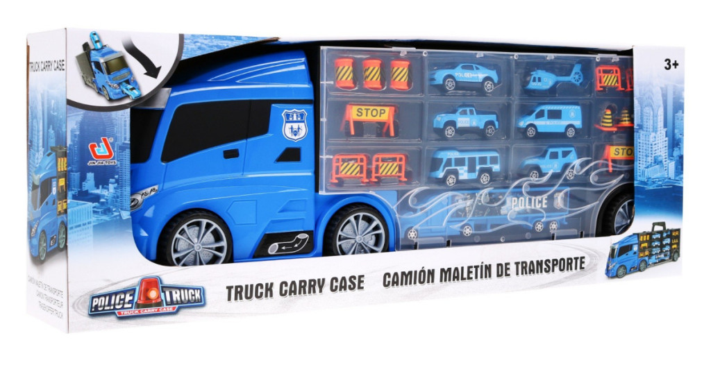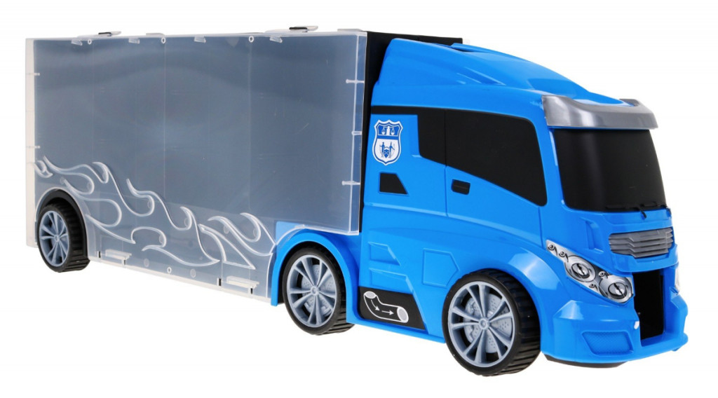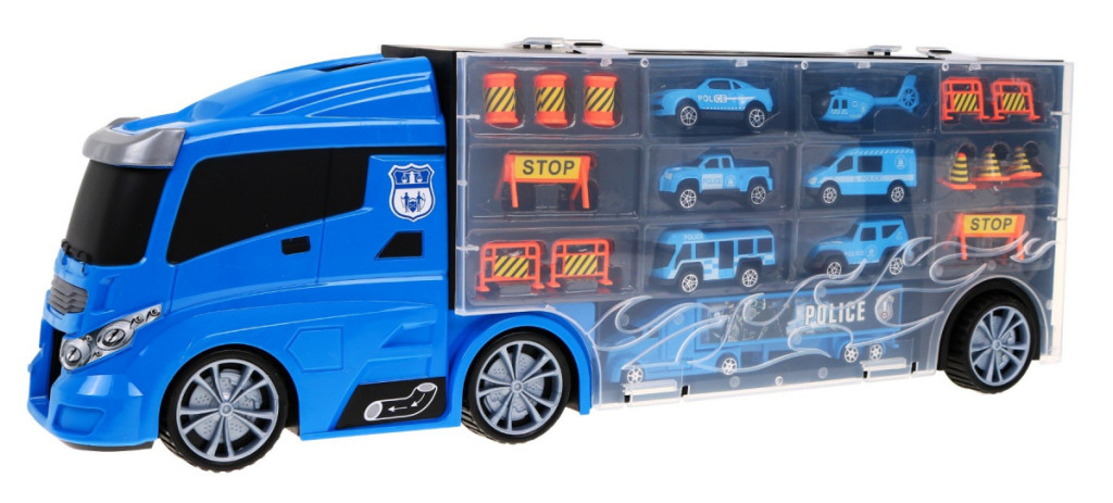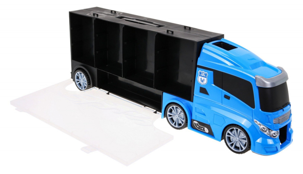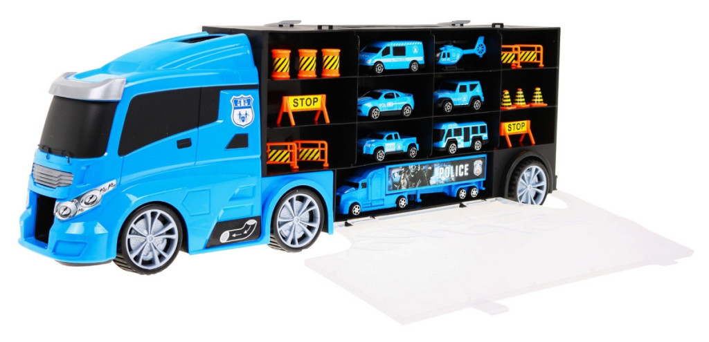Ciężarówka policyjna 2w1 dla dzieci 3+ Schowek na resorówki + Zjeżdżalnia dla autek