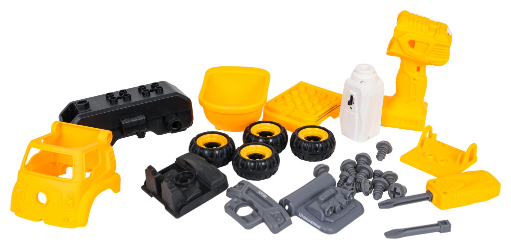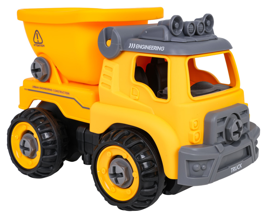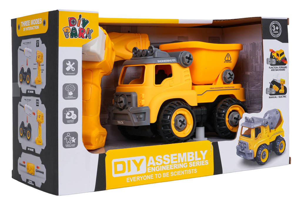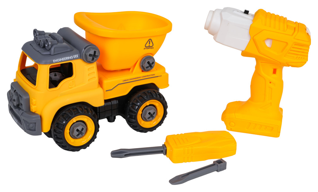 Interaktywny pojazd budowlany dla dzieci od trzeciego roku życia z akcesoriami w zestawie. Pojazd otrzymujemy skręcony i kompletny, możemy go rozłożyć na części pierwsze za pomocą dołączonego do zestawu śrubokręta lub wkrętarko wiertarki. Śrubokręt jest manualny, natomiast wkrętarko wiertarka jest na baterie. Wiertarka posiada wyjmowany panel, jeżeli przełożymy ten panel do pojazdu, wówczas będzie się przemieszczał do przodu i do tyłu. Zabawka posiada ruchome elementy takie jak przyczepa czy dach pojazdu. Zabawka wykonana została z najlepszej jakości materiałów, w żywych kolorach. Panel sterujący zasilany jest bateriami typu 2 x AA 1,5 V (brak w zestawie). Funkcje zestawu: - przeznaczony dla dzieci od trzeciego roku życia, - wykonany z solidnych materiałów, - żywe kolory przyciągają wzrok dziecka, - pojazd możemy rozłożyć na części pierwsze za pomocą śrubokręta lub wkrętarko-wiertarki, - pojazd budowlany jeździ sam do przodu lub tyłu po włożeniu panelu zasilającego, - wkrętarko-wiertarka na baterie, wkręca i wykręca, - podnoszona przyczepa, podnoszony dach pojazdu. |