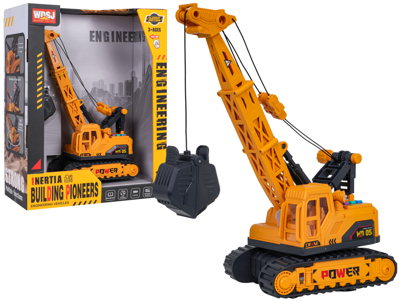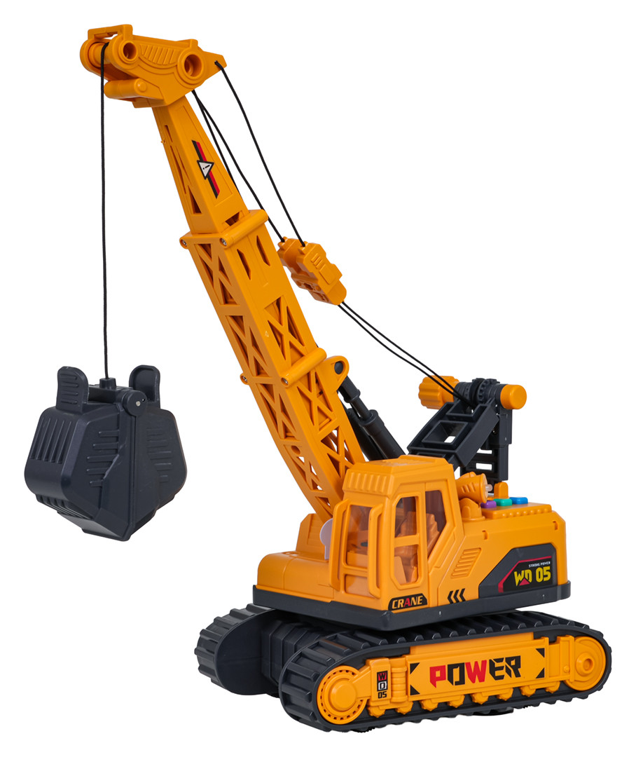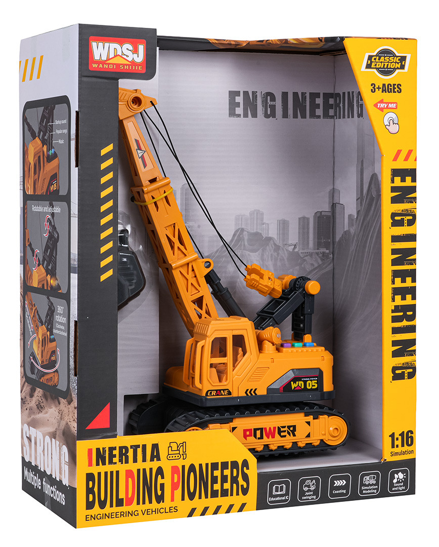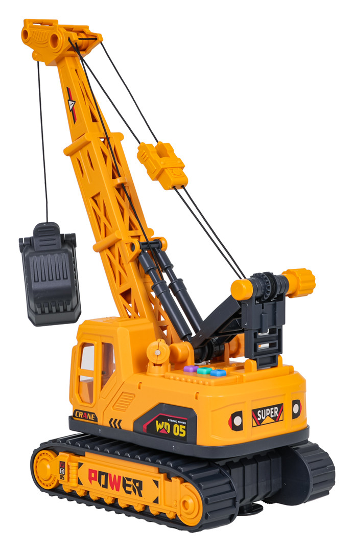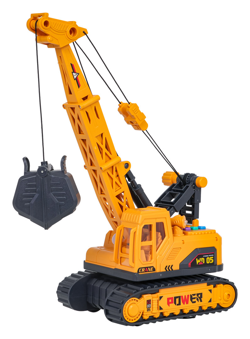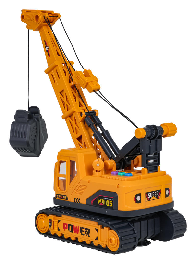 Interaktywny dźwig gąsienicowy, wykonany w skali 1:16, z ruchomymi elementami dla dzieci od trzeciego roku życia. Zabawka wykonana została z najlepszej jakości materiałów z dbałością o szczegóły. Ręcznie możemy sterować wysięgnikiem oraz opuszczać i podnosić chwytak do załadunku. Podstawa maszyny może wykonywać obrót o 360 stopni. Na dachu zabawki znajdują się przyciski, które uruchamiają przyciski dźwiękowe i świetlne. Spodem dźwigu umiejscowiono małe kółeczka, które posiadają napęd. Zabawka zasilana jest bateriami typu 3 x AG13 (w zestawie). Funkcje: - zabawka odpowiednia dla dzieci od trzeciego roku życia, - sala wykonania 1:16, - wykonana z najlepszej jakości materiałów, - manualnie podnoszony i opuszczany wysięgnik, - manualnie podnoszony i opuszczany chwytak, - obrotowa podstawa o 360 stopni, - efekty dźwiękowe: wesołe piosenki, odgłosy pracy maszyny, - efekty świetlne ok. mrugające światełko, - napęd na przednie kółeczka. |