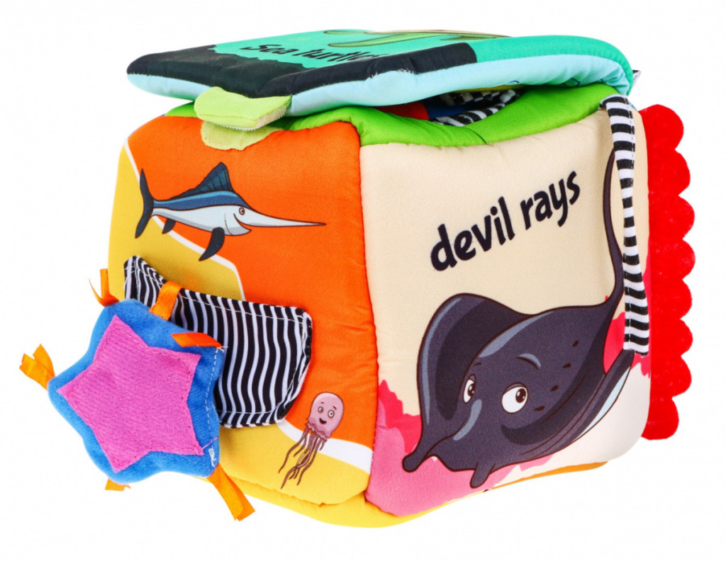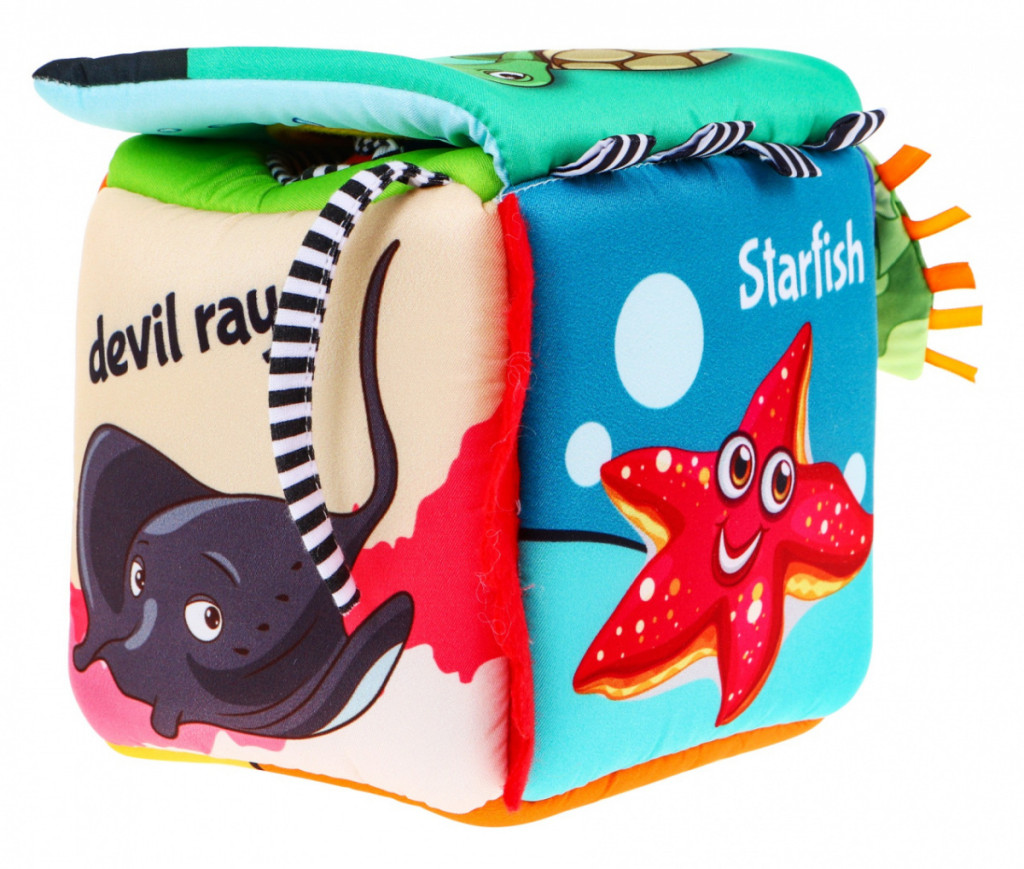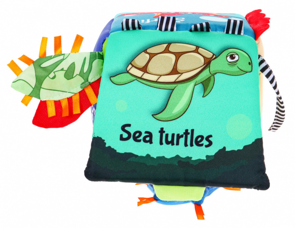 Sensoryczna kostka "Morski świat" dla dzieci 18m+ Materiałowa zabawka + Grzechotki