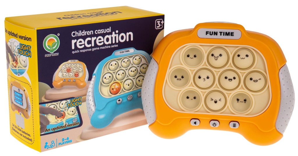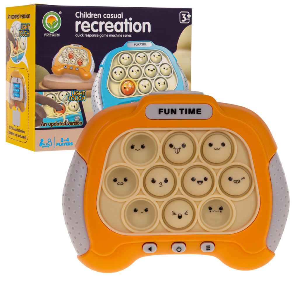 Interaktywna gra zręcznościowa z funkcją dźwięku i światła dla dzieci od 3-go roku życia. Gra z wyglądu przypomina pada i łączy w sobie grę Memory i Bubble Pop It. Zadaniem dziecka jest wciskanie odpowiednich bąbelków na padzie, w takiej kolejności jak wyświetlają się światełka na urządzeniu. Należy obserwować sekwencję wyświetlanych światełek, a następnie ją powtórzyć. Zabawka posiada 5 trybów rozgrywki, a podczas zabawy towarzyszy dzieciom muzyka. Gra ćwiczy zdolności motoryczne i poznawcze, pomaga się zrelaksować, poprawia pamięć i koncentrację. Zabawka zasilana jest bateriami typu 3 x AAA 1,5 V (brak w zestawie).