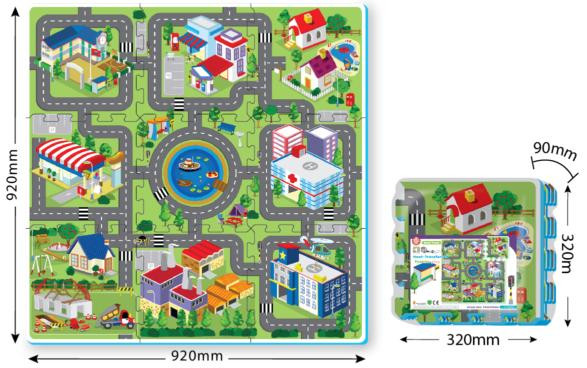 Edukacyjne, kolorowe puzzle piankowe z motywem lotniska to propozycja dla najmłodszych od 10-go miesiąca życia. Puzzle wykonano z miękkiej i przyjemnej w dotyku pianki, bardzo łatwo utrzymać je w czystości, wystarczy tylko przetrzeć wilgotną ściereczką. Zestaw składa się z 9 puzzli z których można ułożyć matę przedstawiającą lotnisko z samolotami oraz pasami startowymi i lądowiskiem. Do zestawu dołączono również piankowe elementy samolotu do samodzielnego złożenia. Właściwości puzzli piankowych: - wykonane z bezpiecznej dla dziecka pianki EVA, - miękkie i przyjemne w dotyku, - struktura antypoślizgowa, - kolorowe, - wodoodporne, - łatwe w utrzymaniu czystości, - chronią przed zimnem od podłoża, - amortyzują upadki, - uczą przez zabawę – pobudzają wyobraźnię, koncentrację, percepcję wzrokowo-ruchową, logiczne myślenie, uczą kolorów i kształtów, |