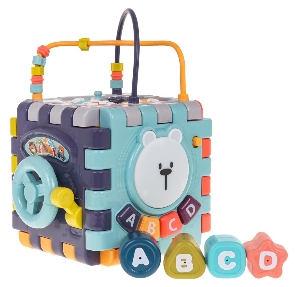 - ścianka z przekładaną książeczką i pałąkiem z ruchomymi elementami - ścianka z telewizorem i suwakiem - górna ścianka z kołami zębatymi i przekładankami Funkcje zestawu: - przeznaczona dla dzieci od 18-go miesiąca życia, - wykonana z najlepszej jakości plastiku w żywych kolorach, - boks złożony z 6 ścian, puzzli, - możliwość spinania w dowolnym układzie puzzli, - ścianka interaktywna z efektem światła (podświetlana głowa misia) i dźwięku (klawisze z numerkami i miś), - ruchome elementy: kierownica, dźwignia zmiany biegów, suwak, koła zębate, przekładane strony książki, - sorter kształtów z klockami, - klocki z grzechotką w środku. |
