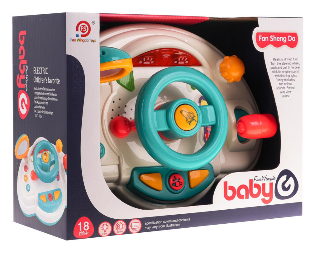 | Interaktywny symulator jazdy z efektami dźwiękowymi i świetlnymi dla dzieci od 18-go miesiąca życia. Zabawka wykonana została z najlepszej jakości plastiku w żywych kolorach, przyciągających wzrok dziecka. Po uruchomieniu zabawki usłyszymy charakterystyczne dźwięki odpalania i jazdy pojazdu. Kierownicą możemy kręcić, w środku kierownicy znajduje się przycisk z odgłosami klaksonu. W górnej lewej stronie jest regulowane lusterko, a pod nim trzy przyciski uruchamiające zabawne melodie. Po naciśnięciu kierunku zabawka wydaje komendy głosowe (turn left/right). Po prawej stronie symulatora znajduje się dźwignia zmiany biegów. Zabawka zasilana jest bateriami typu 2 x AA 1,5 V (brak w zestawie). Funkcje zabawki: - przeznaczona dla maluszków od 18-go miesiąca życia, - wykonana z najlepszej jakości plastiku w żywych kolorach, - funkcje dźwiękowe: dźwięk odpalania pojazdu i silnika, klakson, zabawne melodie, odgłosy jazdy, alarmy, komendy w języku angielskim, - funkcje świetlne: podświetlane kierunkowskazy i deska rozdzielcza, - elementy ruchome: lusterko, kierownica, kierunki, dźwignia zmiany biegów, - regulacja głośności. |