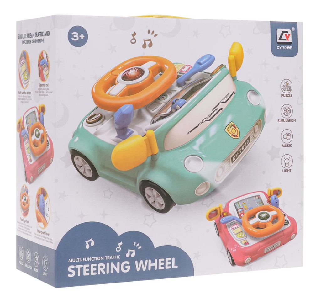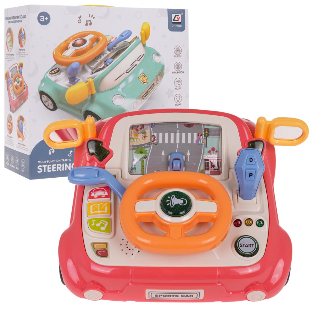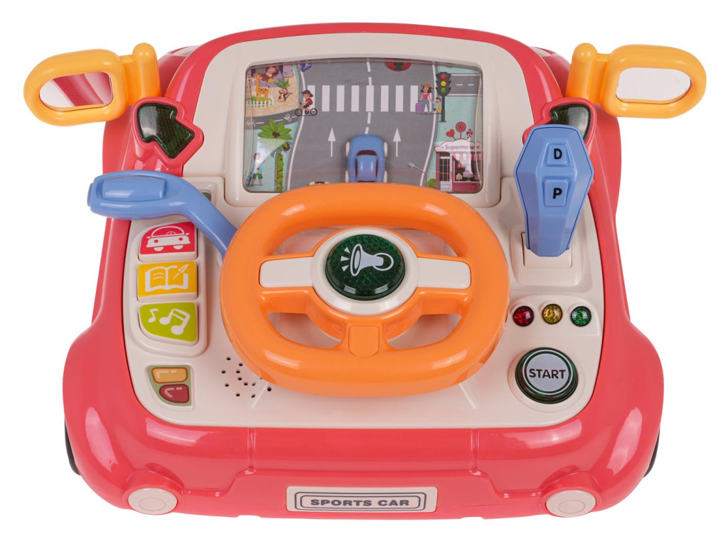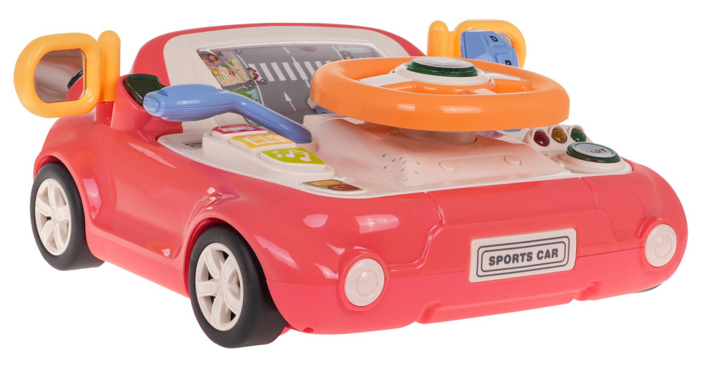 | Interaktywna zabawka w kształcie autka z efektami dźwięku i światła dla dzieci powyżej 3-go roku życia. Zabawkowe autko do nauki zasad ruchu drogowego wykonane zostało z najlepszej jakości plastiku w żywych kolorach. Nie posiada ostrych krawędzi, jest w pełni bezpieczne dla malucha. Z przodu autka mamy świecące lampy, a pod spodem pojazdu znajdują się przyssawki. W środku autko posiada ruchomą kierownicę z podświetlanym klaksonem, dźwignię biegów, podświetlane migacze, sygnalizację jazdy (zielony, żółty, różowy), przyciski dźwiękowe z odgłosami wydawanymi przez pojazd, muzyczka, a na ekraniku znajdującym się za szybką przesuwającą się drogę i autko, którym dziecko musi kierować. Po bokach samochodu znajdują się duże lusterka. Zabawka zasilana jest bateriami typu 3 X AA 1,5 V (brak w zestawie) Funkcje zabawki: - przeznaczona dla dzieci od 3-go roku życia, - wykonana z najlepszej jakości plastiku i nie posiada ostrych krawędzi, - efekty świetlne: przednie reflektory, kierunkowskazy, klakson, sygnalizator jazdy, - efekty dźwiękowe: klakson, migacze, przycisk start, odgłosy pojazdu, melodie, - 4 przyssawki na spodzie pojazdu, - żywa kolorystyka, - uczy zasad ruchu drogowego, - rozwija koordynację ręka-oko, - ruchoma kierownica, - ruchomy pojazd na ekraniku, - ruchoma droga na ekraniku. |