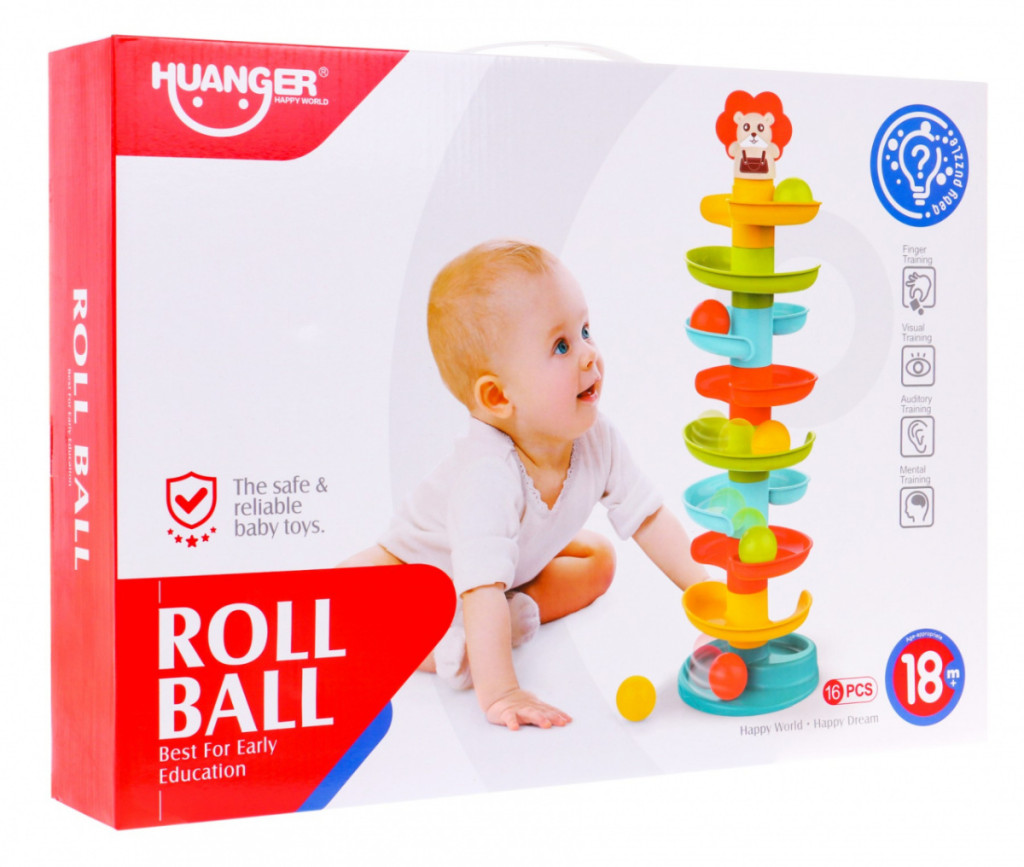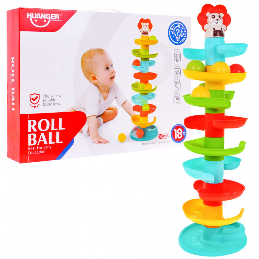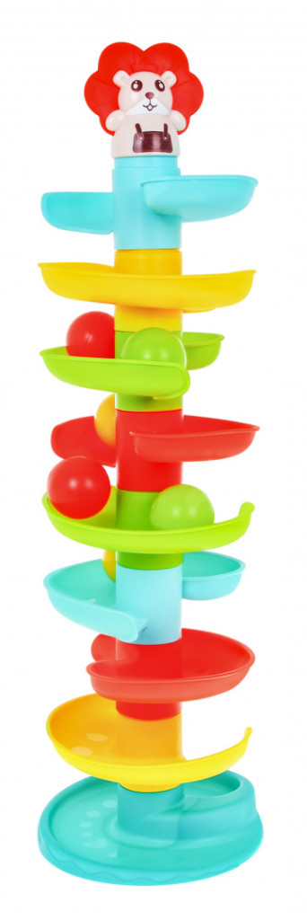 Kolorowa wieża Lion to zabawka edukacyjna przeznaczona dla dzieci od 18 miesiąca życia. Wieża składa się z 9 kolorowych poziomów, dziecko kładzie piłeczkę na górze wieży a piłeczka toczy się na sam dół i wypada. Piłeczki są zarazem grzechotkami, wydają odgłosy podczas potrząsania oraz spadania z wieży. Zabawka rozwija zdolności motoryczne, sprawność ruchową, stymuluje zmysły, pomaga zrozumieć zasady przyczyny i skutku.