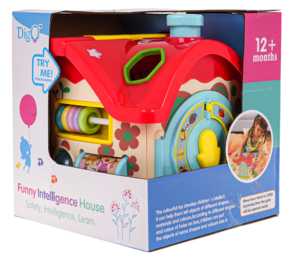 Wielofunkcyjny domek z sorterem dla dzieci od 18-go miesiąca życia. Zabawka wykonana została z najlepszej jakości plastiku w żywych kolorach zachęcających dziecko do edukacyjnej zabawy. Zabawa domkiem rozwija u dzieci funkcje motoryczne, uczy rozpoznawać kolory i kształty, rozwija orientację przestrzenną i uczy logicznego myślenia. Domek składa się z czerwonego dachu i czterech ścian. Czerwony dach W dachu znajdują się otwory, do których dziecko powinno przypasować klocki o identycznych kształtach. Aby ułatwić dziecku to zadanie, otwory posiadają taki sam kolor jak kolor odpowiedniego klocka. Jest też komin z piszczałką oraz wyciągana rączka do przenoszenia. Ścianka z zegarem Za zegarem ukryte są drzwi do domku, aby je otworzyć, dziecko musi odpowiednio ustawić strzałki. Ścianka z sorterem kształtów Na ściance znajdują się otwory w kształcie literek (A, B, C, D), dziecko musi przypasować do nich odpowiednie klocuszki. Ścianka z kołami zębatymi Maluch kręci korbką i wprawia w ruch koła zębate, które wydają zabawne dźwięki. Ścianka z liczydłem, walcem i kulką Na tej ściance znajduje się liczydło z kolorowymi kulkami, walec do obracania z rysunkami oraz kulka wypełniona perełkami, które podczas obracania kulką wydają zabawne dźwięki. Funkcje zestawu: - odpowiedni dla dzieci od 18-go miesiąca życia, - wykonany z najlepszej jakości plastiku, - żywe kolory zachęcają do edukacyjnej zabawy, - sorter kształtów z figurami geometrycznymi na dachu domku, - sorter kształtów z literkami, - ścianka z zegarem i ukrytymi drzwiami, - ścianka z liczydłem, walcem i kulką, - ścianka z kołami zębatymi, - 4 klocuszki z kształtem figur geometrycznych w czterech kolorach, - 4 klocuszki z literkami w różnych kolorach, - ćwiczy małe rączki, - uczy logicznego myślenia. |