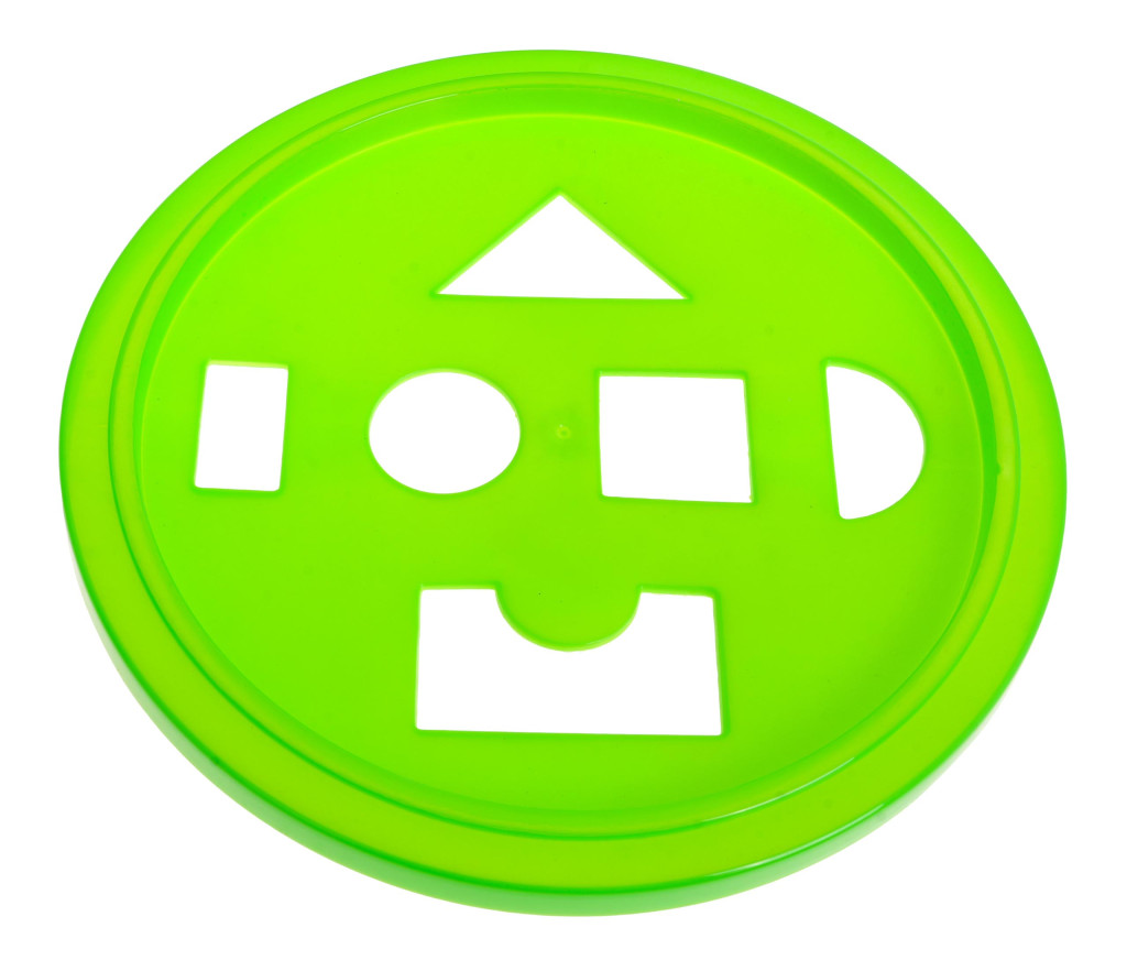 Klocuszki zamknięte są w pudełku, na pokrywie którego znajduje się sorter oraz wygodny sznureczek do przenoszenia.
