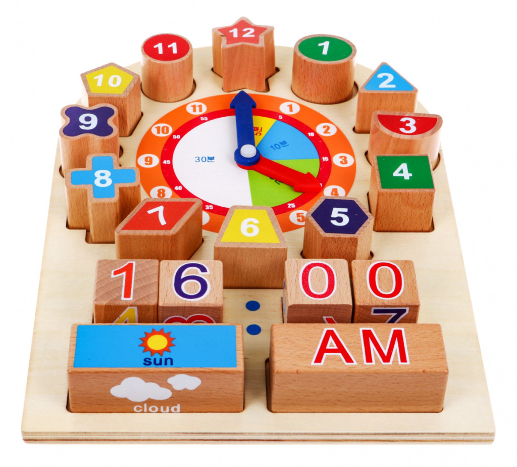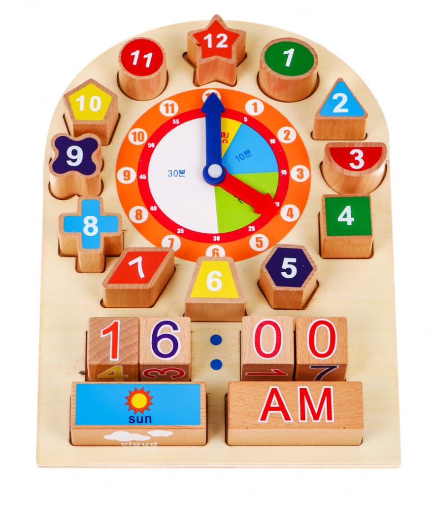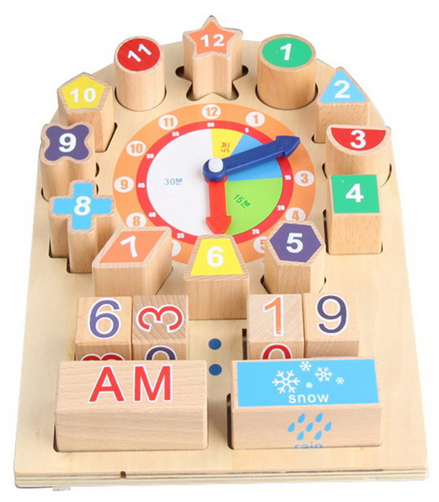 Drewniana plansza edukacyjna Zegar dla dzieci 12m+ Nauka czytania czasu i pogody