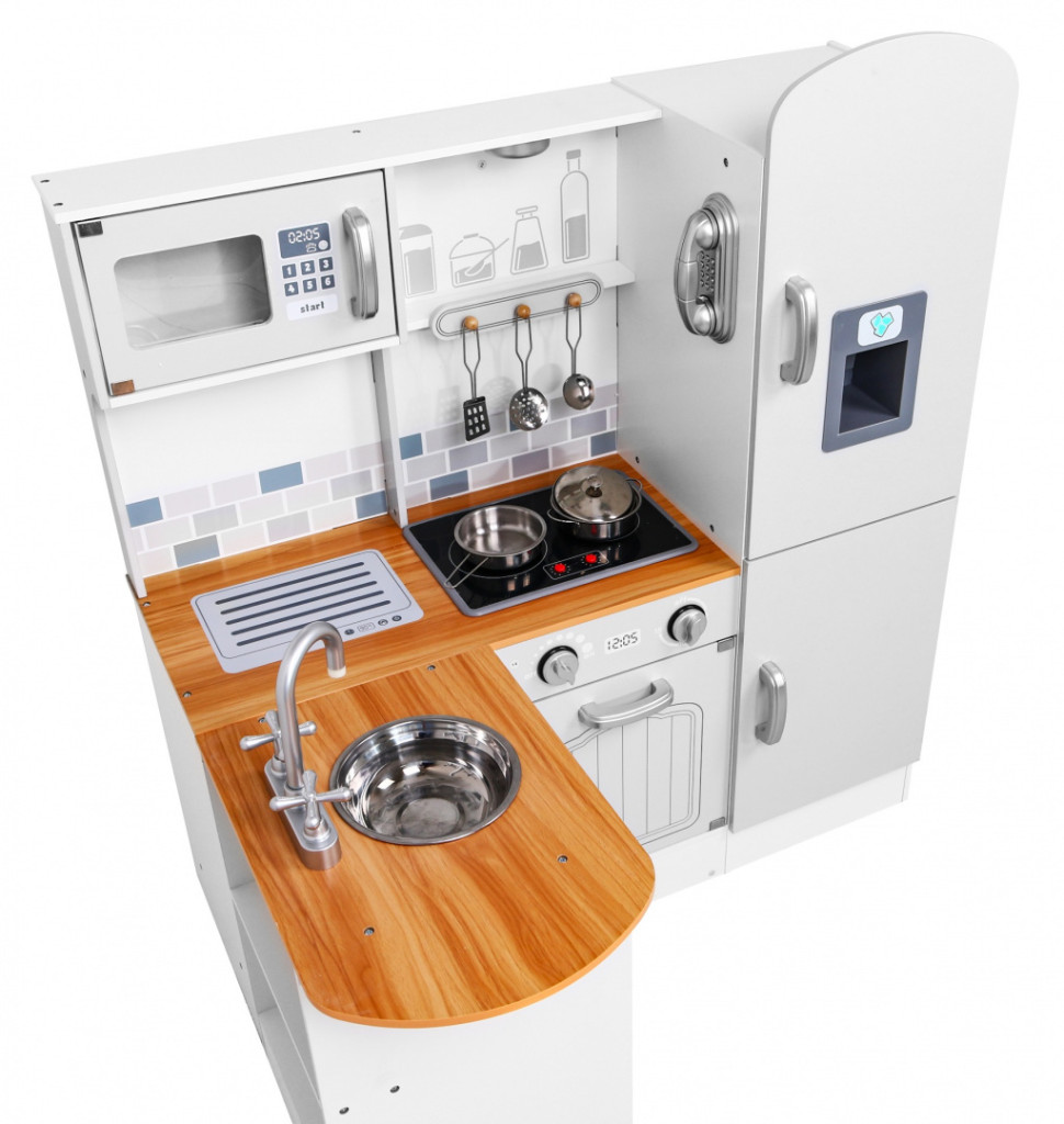 OpisMega Narożna Drewniana kuchnia z efektami światła i dźwięku