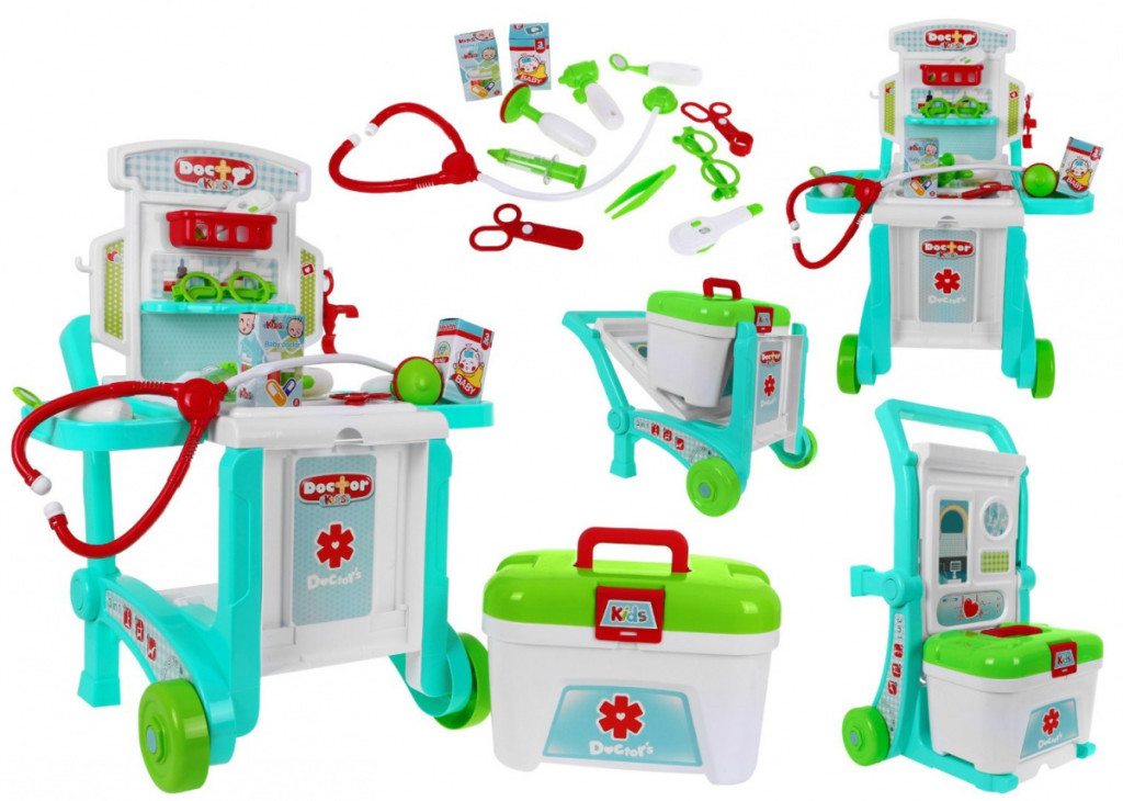 Przenośny Gabinet Lekarski dla dzieci 3+ Walizka + Stolik + 2 rodzaje Wózka + Akcesoria