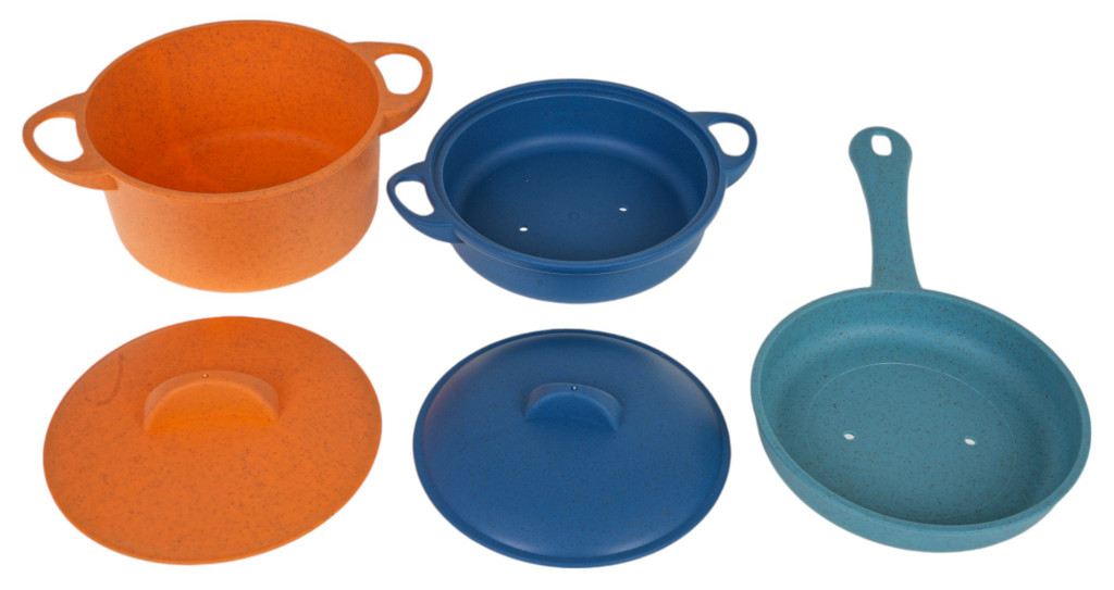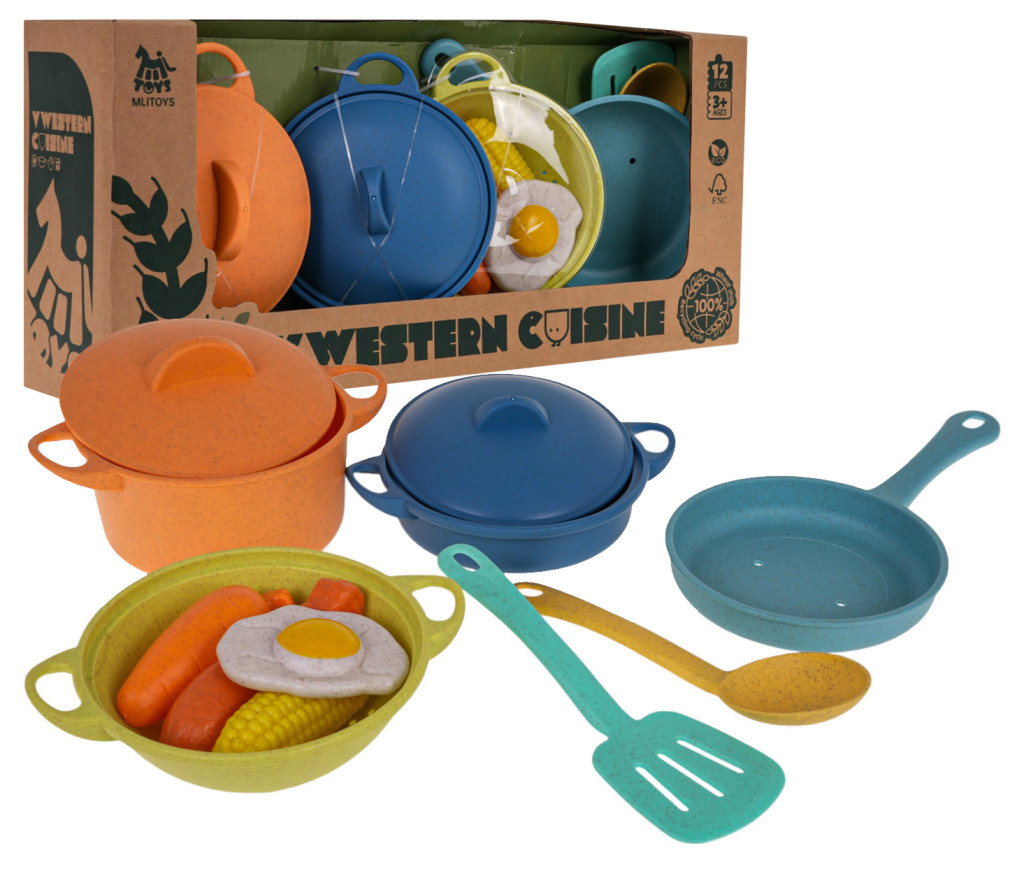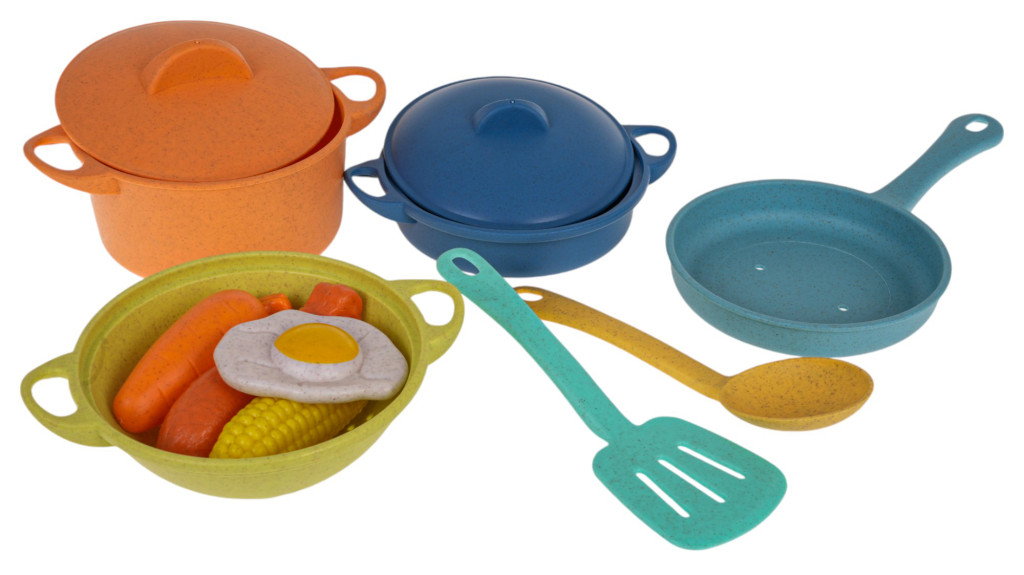 | Zestaw garnków wykonanych z Bioplastiku, dla dziecka od 3-go roku życia. Zestaw składa się z 12 elementów w różnych kolorach. Mamy patelnię, dwa garnki z pokrywką, cedzak, łopatkę, łyżkę oraz atrapy produktów spożywczych takie jak jajko sadzone, nóżka z kurczaka, marchewka, kukurydza. Ten zestaw daje nieograniczone możliwości zabawy. Materiał, z którego wykonany jest zestaw, jest przyjazny dla dziecka i środowiska naturalnego. Funkcje zestawu: - wykonany z najlepszej jakości ekologicznych materiałów, - bezpieczny dla dzieci od 3-go roku życia, - różnorodność i bogactwo kolorów, - 12 elementów zestawu, - stymuluje zmysły dziecka. |