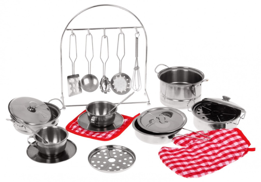 Zestaw Szefa kuchni dla dzieci 3+ Garnki + Przybory kuchenne + Strój kucharza + Akcesoria 23 el.