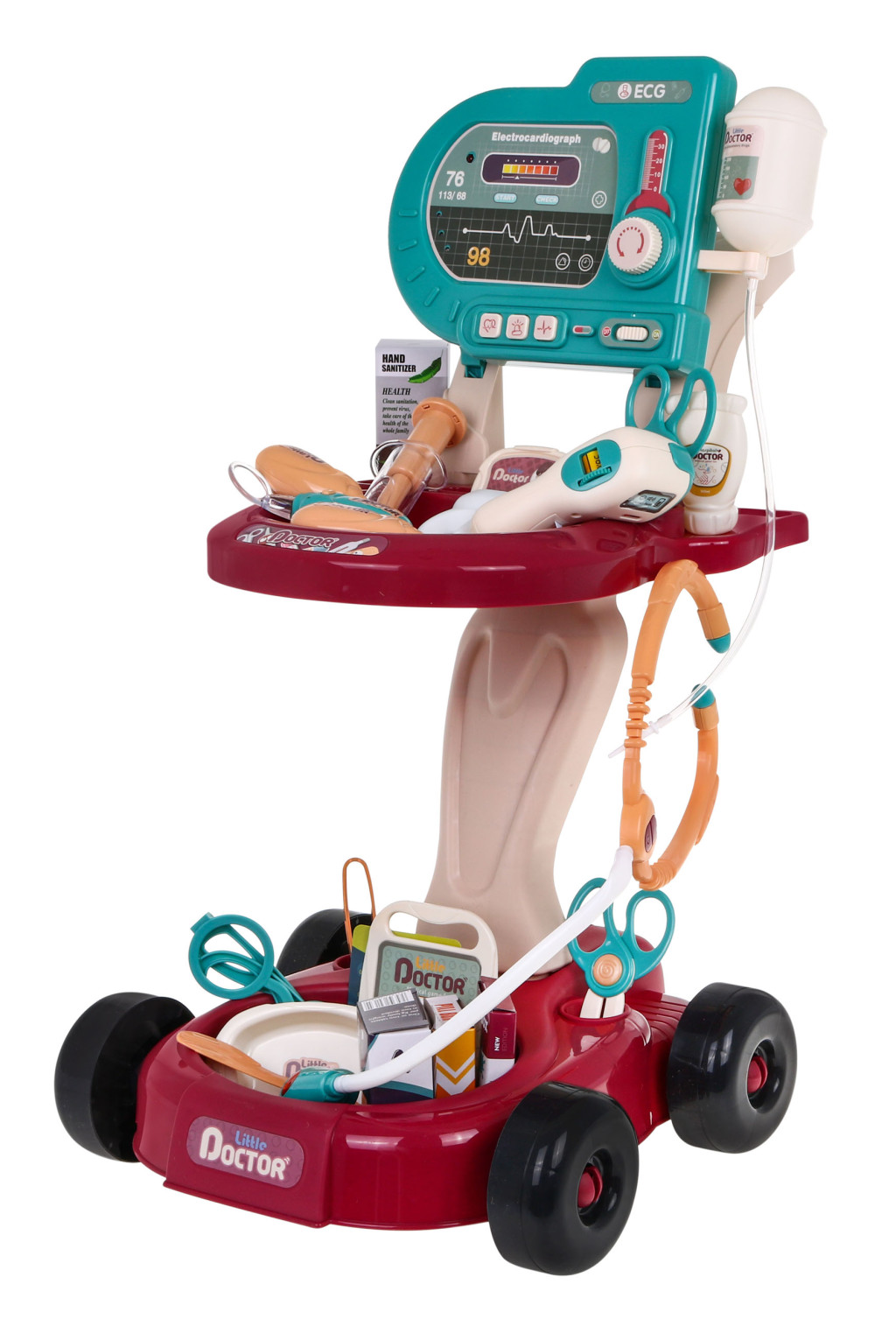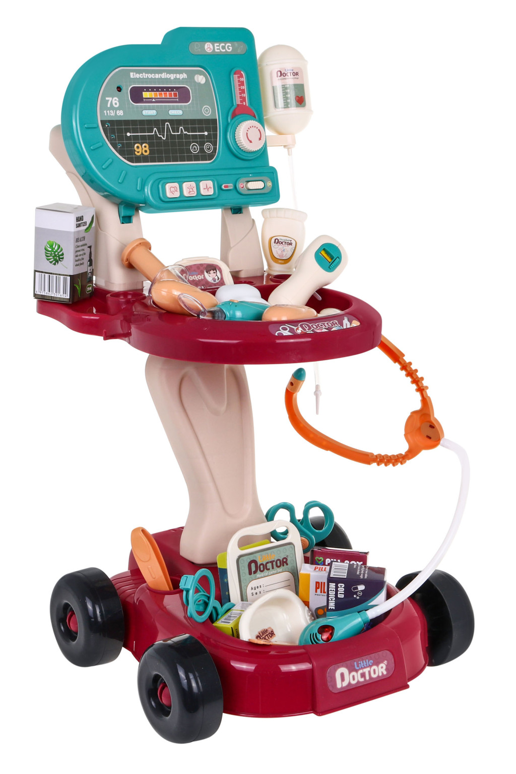 Zestaw lekarski dla dzieci 3+ Wózek + panel EKG 24 el. Kardiolog Dentysta Ortopeda Pielęgniarka