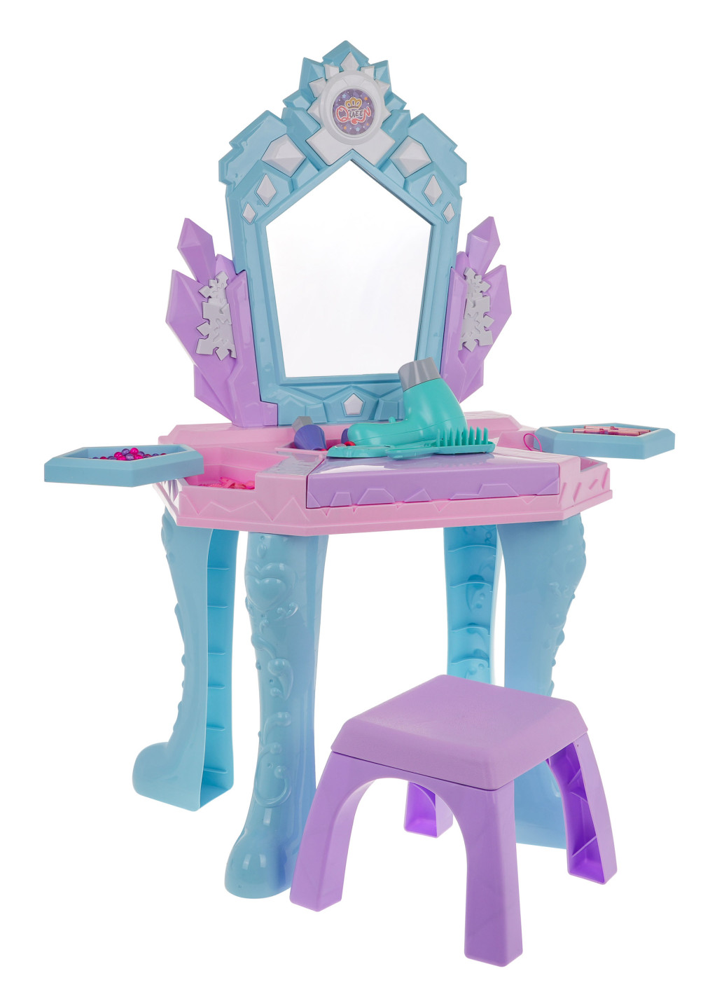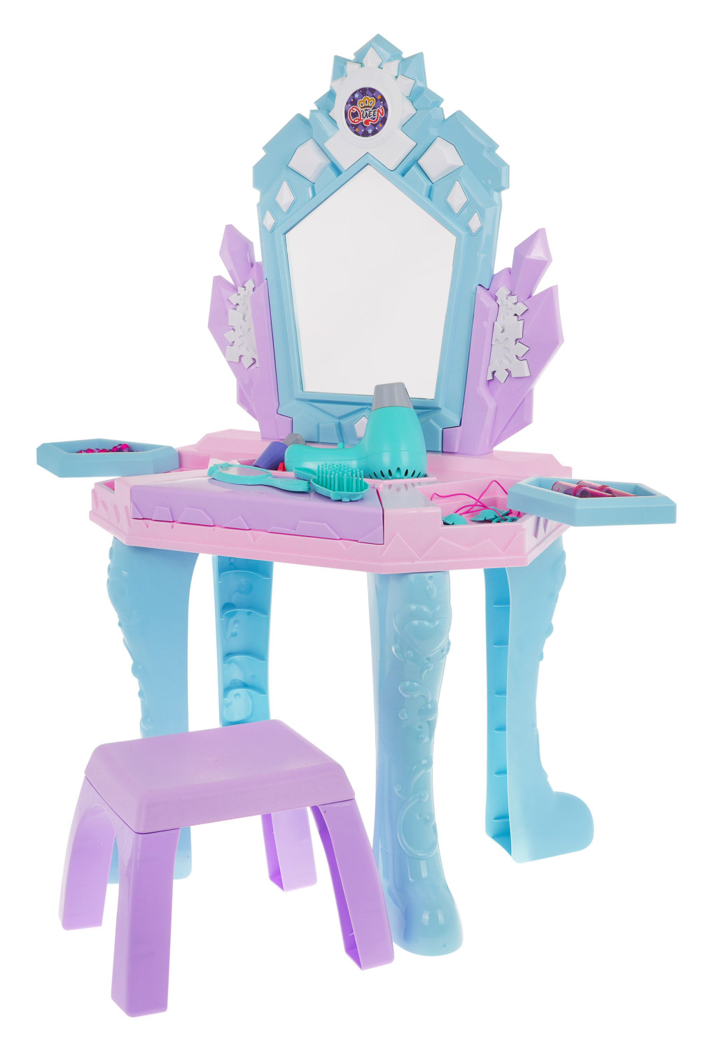 Interaktywna Toaletka Księżniczki dla dzieci 3+ Akcesoria + Suszarka + Magiczne Lustro + Atrapy kosmetyków + Biżuteria