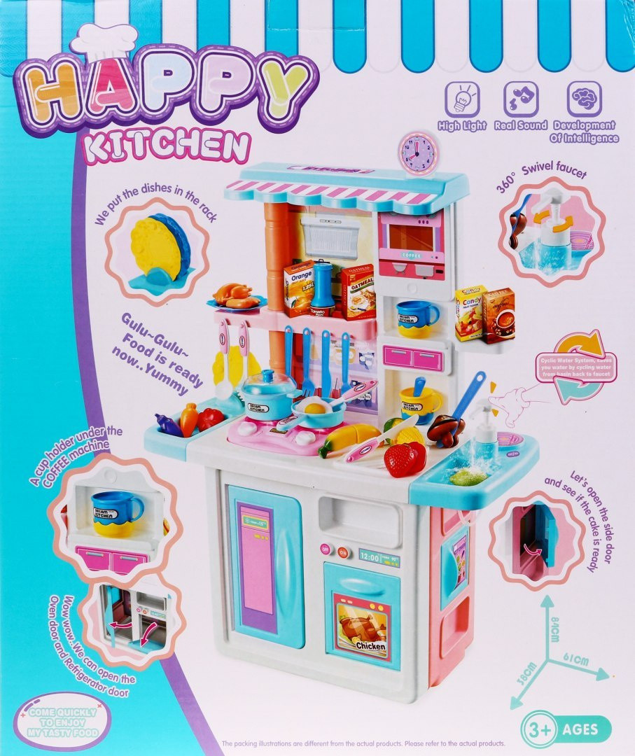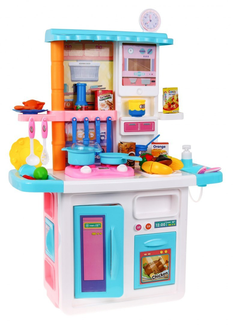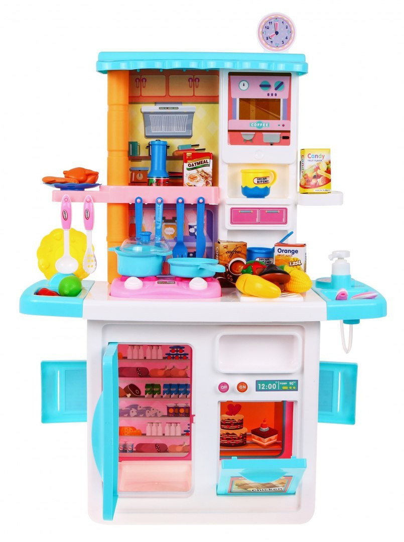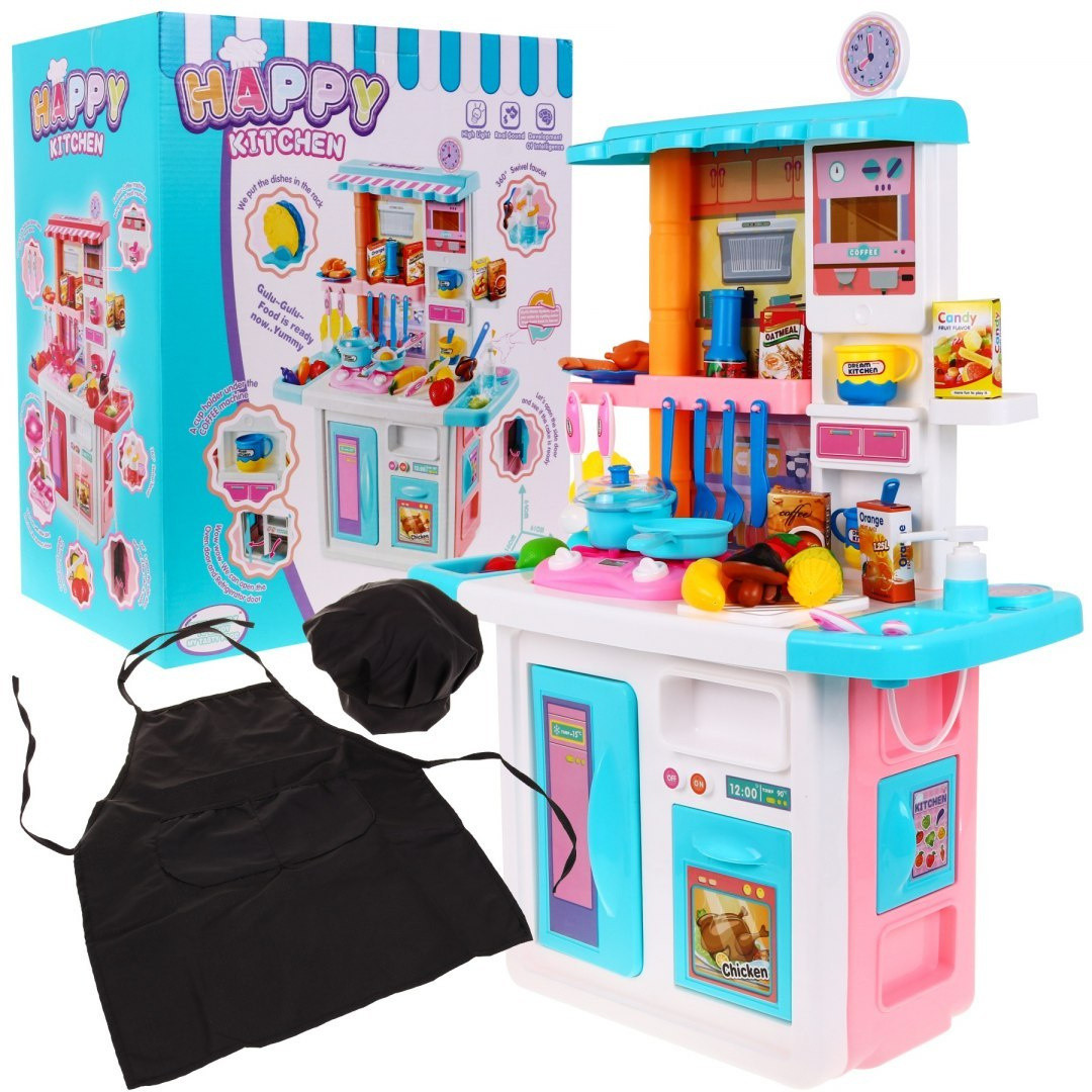 | Rewelacyjna, bogato wyposażona interaktywna kuchnia dla małych kucharzy i kucharek. Kuchnia posiada zlew z kranem na prawdziwą wodę, sensoryczne palniki indukcyjne, ruchome pokrętła, okap, otwierany piekarnik, lodówka oraz szafeczki, półeczki i liczne akcesoria kuchenne. Palniki są podświetlane i wydają odgłosy gotowania oraz smażenia. W zestawie znajduje się czapka i fartuszek kucharza, żeby twoje dziecko poczuło się jak prawdziwy szef kuchni. Fartuszek posiada 2 kieszonki np. na akcesoria kuchenne. Znakomite wykonanie, żywe kolory, kolorowe opakowanie. Zabawka zasilana jest bateriami typu 2 x AA (brak w zestawie). Zabawka dla dzieci powyżej 3 roku życia, posiada certyfikat CE.