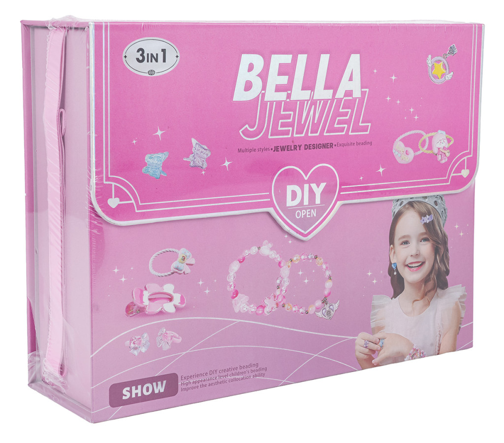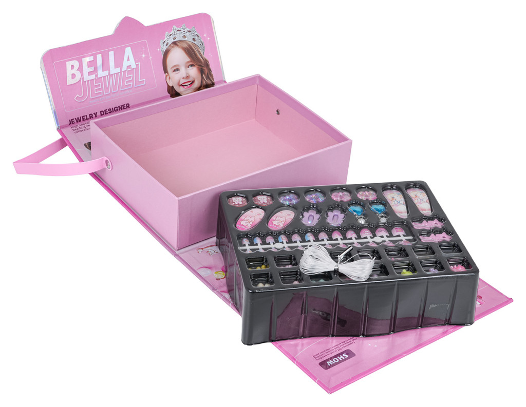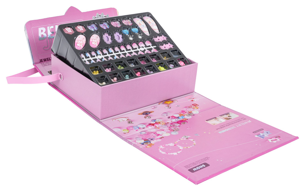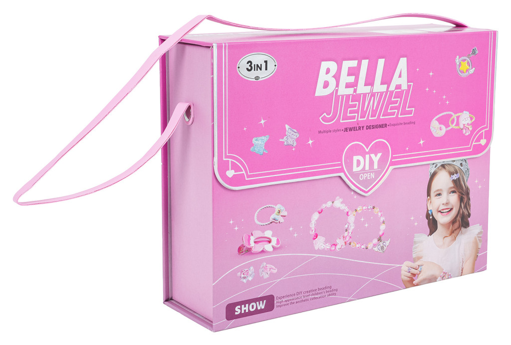 | Kreatywny, luksusowy zestaw do robienia biżuterii w torebce dla dzieci od trzeciego roku życia. W zestawie znajdziemy: koraliki, spinki do włosów, kolczyki, pierścionki i sztuczne paznokcie. Z tym zestawem twoja pociecha stworzy niepowtarzalną biżuterię, wyjątkową, jedyną w swoim rodzaju. Zestaw wzmacnia kreatywność, umiejętności motoryczne, ćwiczy palce dłoni. Śliczna torebka jako opakowanie pozwoli zabrać zestaw wszędzie ze sobą.