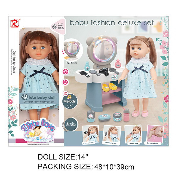 Wymiary | - toaletka ok. 38,5 cm x 34,5 cm x 14,5 cm, - lalka ok. 35 cm x 16 cm x 10 cm, - pojemniczek do pojenia lali ok. 10 cm x 5 cm x 4 cm, - mydelniczka ok. 7,5 cm x 5 cm x 3 cm, - pudełko na maść ok. 4 cm x 4,5 cm, - pudełko na zasypkę ok. 7 cm x 4,5 cm, - pantofelki na zmianę ok. 5 cm x 2 cm x 3,5 cm - suszarka do włosów ok. 9 cm x 7,5 cm x 4,5 cm, - lusterko, ok. 11 cm x 5,5 cm x 2 cm, - grzebyk ok. 11 cm x 4,5 cm, - szczotka do włosów ok. 11 cm x 5,5 cm x 2 cm, - opakowanie ok. 48,5 cm x 39,5 cm x 10 cm. |