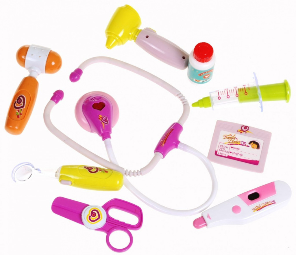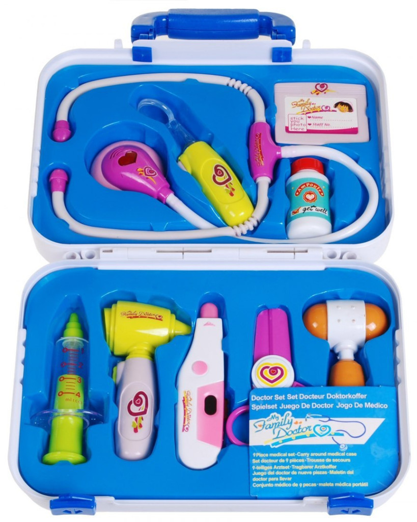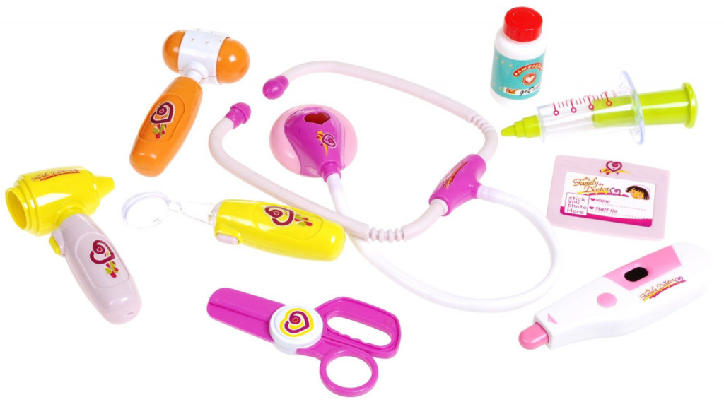 Kolorowa forma instrumentów lekarskich oraz dźwięki wydawane przez niektóre z nich sprawiają, że są one bardziej przyjazne naszym maluchom.