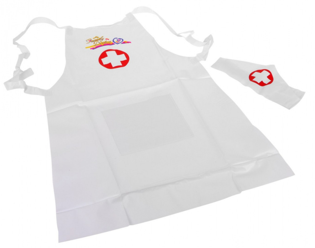 Bogate, 10-cio elementowe, wyposażenie daje nieograniczone możliwości w leczeniu małych pacjentów, a zabawę uatrakcyjnia fartuszek lekarski.
