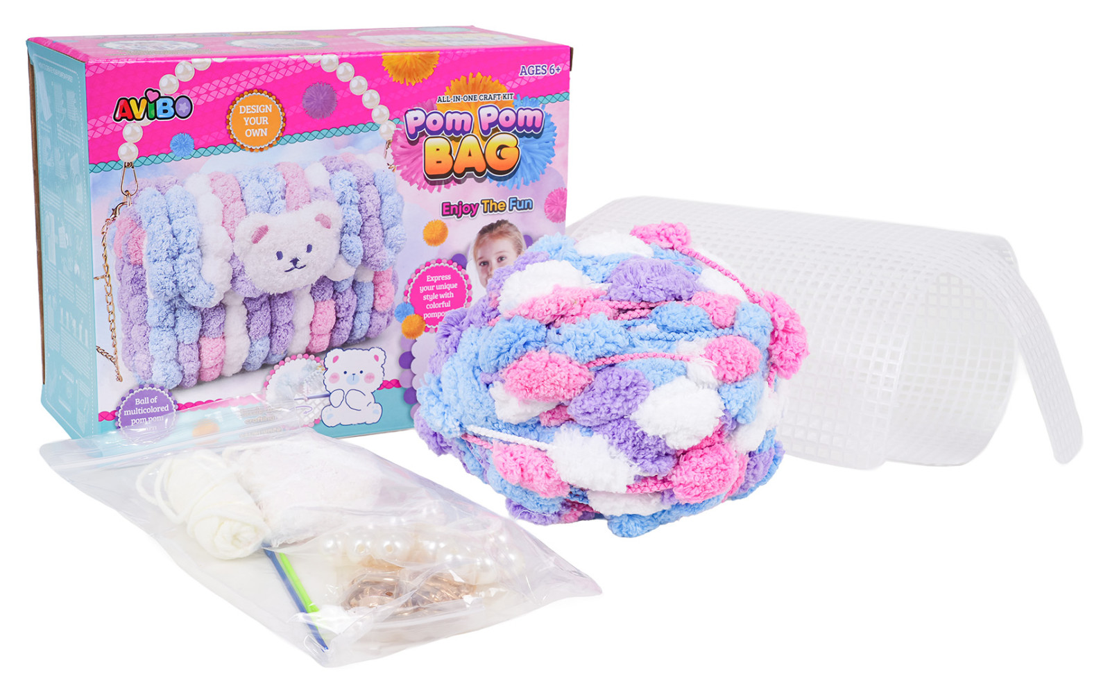 Zestaw do samodzielnego zrobienia torebki dla dzieci od szóstego roku życia. Zestaw wyposażono we wszystko, co niezbędne, aby wykonać swój własny projekt torebki. Mamy miękki sznureczek z pomponami, zapięcia, koraliki, łańcuszek, włóczkę, sznurek, plastikową formę do torebek, stanowiąca jej szkielet, igłę i szydełko. Każdy mały projektant stanie się specjalistą od robienia torebek.