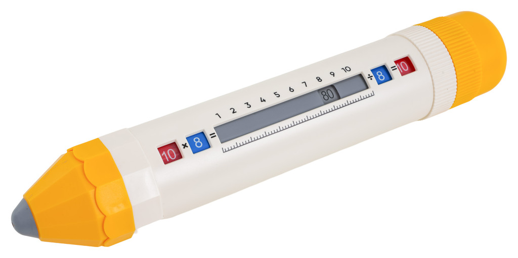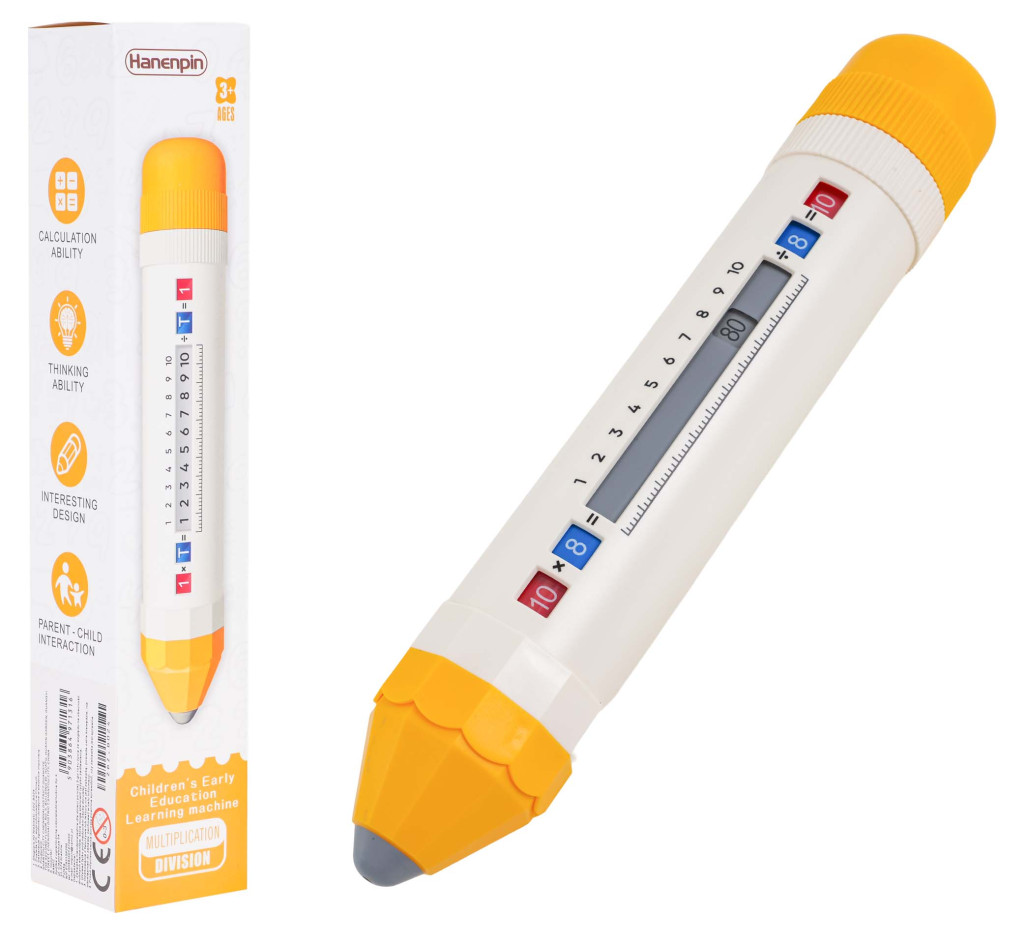 Edukacyjny długopis do nauki mnożenia i dzielenia dla dzieci od trzeciego roku życia. Długopis jest łatwy w użyciu, wystarczy tylko przekręcić dwa uchwyty znajdujące się na jego końcach, by uzyskać wynik mnożenia lub dzielenia. Zabawka uczy przez zabawę.