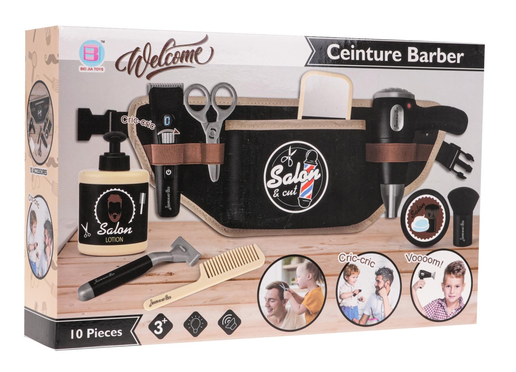 | Bogato wyposażony zestaw barbera z pasem dla dzieci od 3-go roku życia. Zestaw składa się z 10 elementów, wykonany został z najlepszej jakości materiałów, co gwarantuje mu długie użytkowanie. W skład zestawu wchodzą: pas, maszynka do golenia, suszarka, golarka elektryczna, nożyczki, grzebień, lusterko, pędzel, butelka z pompką na kosmetyk, pudełko na piankę. Z tak bogato wyposażonym zestawem, Twoja pociecha będzie mogła bawić się w strzyżenie, modelowanie zarostu, czy też fryzur. Pas można przewiesić przez biodra i umieścić w nim wszystkie elementy zestawu. Suszarka posiada podświetlenie i odgłosy suszenia. Zasilana jest bateriami typu 2 x AAA 1,5 V (brak w zestawie). Funkcje zestawu: - odpowiedni dla dzieci od 3-go roku życia, - wykonany z najlepszej jakości materiałów, - bogate wyposażenie sprawia, że dziecko będzie mogło poczuć się jak prawdziwy barber, - pas barbera, zapinany na zatrzask, można przewiesić przez biodra i ułożyć w nim wszystkie niezbędne elementy, - suszarka posiada oświetlenie i odgłosy suszenia. |