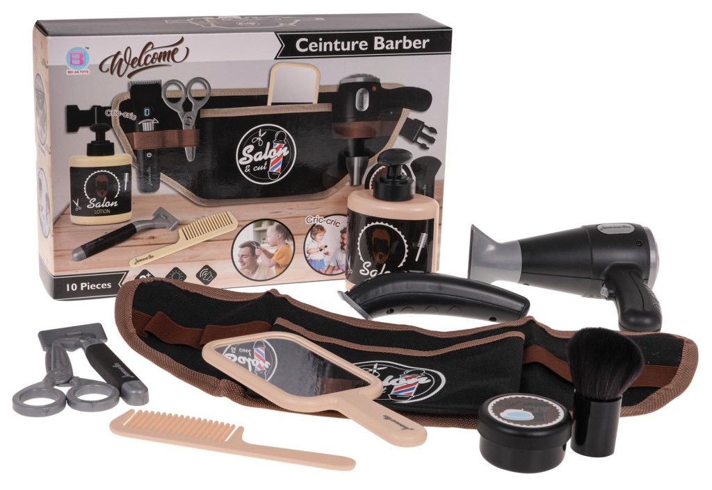 Wymiary | - pas barbera ok. 38 cm x 14,5 cm, - długość całkowita pasa ok. 85 cm, - suszarka ok. 13 cm x 13 cm x 6 cm, - golarka elektryczna ok. 13 cm x 3,5 cm x 3 cm, - maszynka do golenia ok. 12 cm x 4,5 cm x 1,5 cm, - nożyczki ok. 10,5 cm x 6 cm x 0,5 cm, - grzebień ok. 14 cm x 3,3 cm x 0,3 cm, - lusterko ok. 16,5 cm x 7 cm x 1 cm, - pędzel ok. 7 cm x 4 cm x 3 cm, - butelka z pompką na kosmetyk ok. 10,5 cm x 7 cm x 3,5 cm, - pudełko na piankę ok. 2,7 cm x 5 cm, - opakowanie ok. 28,5 cm x 18,5 cm x 6 cm. |