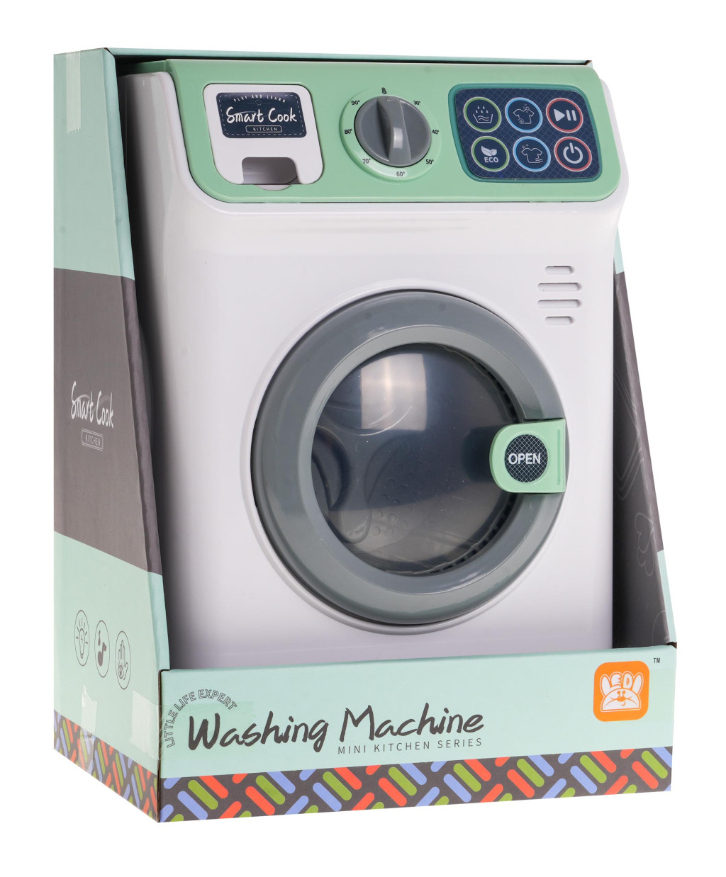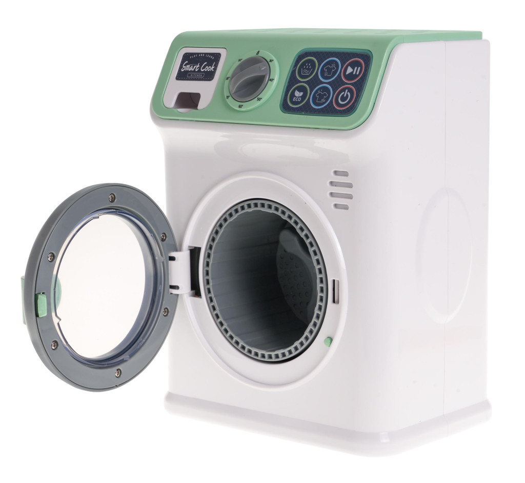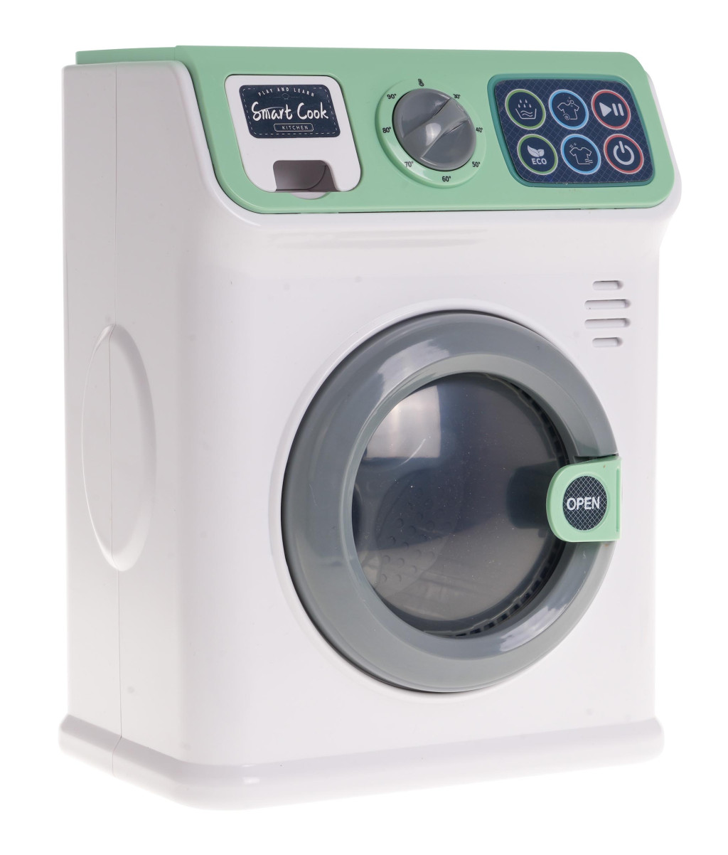 Interaktywna pralka z efektami dźwiękowymi i świetlnymi, otwieranym bębnem i szufladką na detergenty to propozycja dla dzieci powyżej 3-go roku życia. Zabawka wygląda i wydaje dźwięki zupełnie jak prawdziwa pralka. Posiada podświetlany panel dotykowy do wyboru programów prania oraz pokrętło do zmiany temperatury prania. Zabawka zasilana jest bateriami typ 3 x AA 1,5V, baterii brak w zestawie.