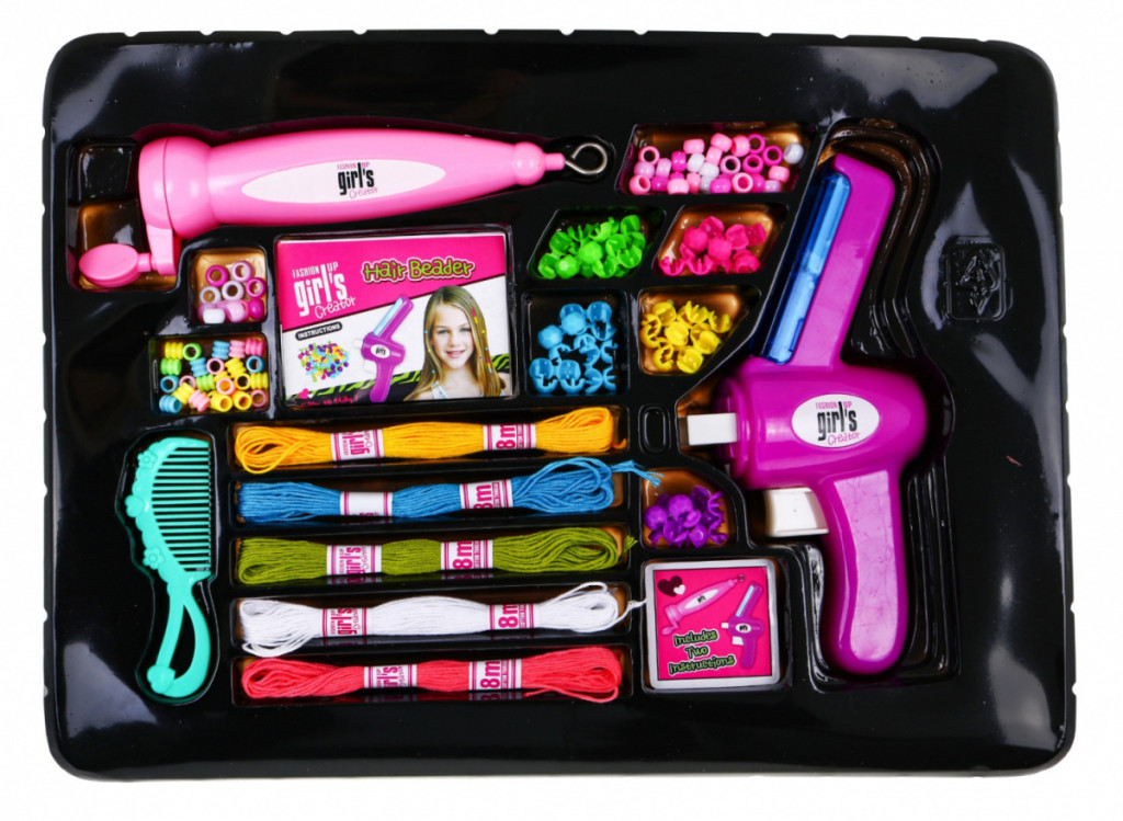 Zestaw koralików do włosów i bransoletek dla dzieci 5+ Maszynki do nawlekania zaplatania + akcesoria