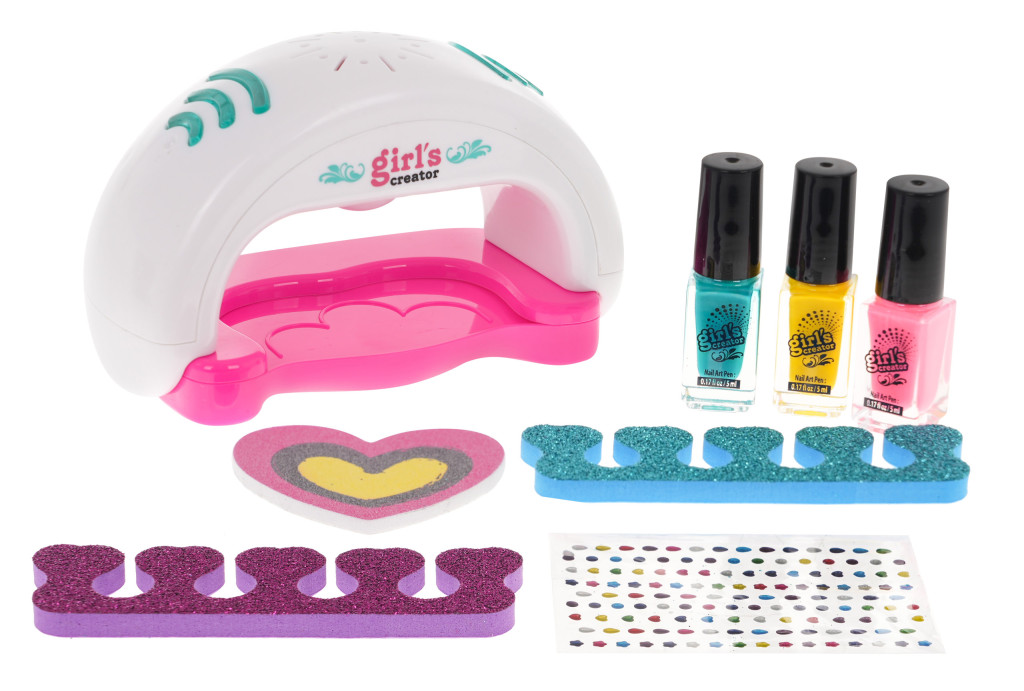 Zestaw do Malowania Paznokci dla dzieci 5+ Akcesoria 8 el. + Interaktywna Suszarka + Lakiery + Cyrkonie do zdobień