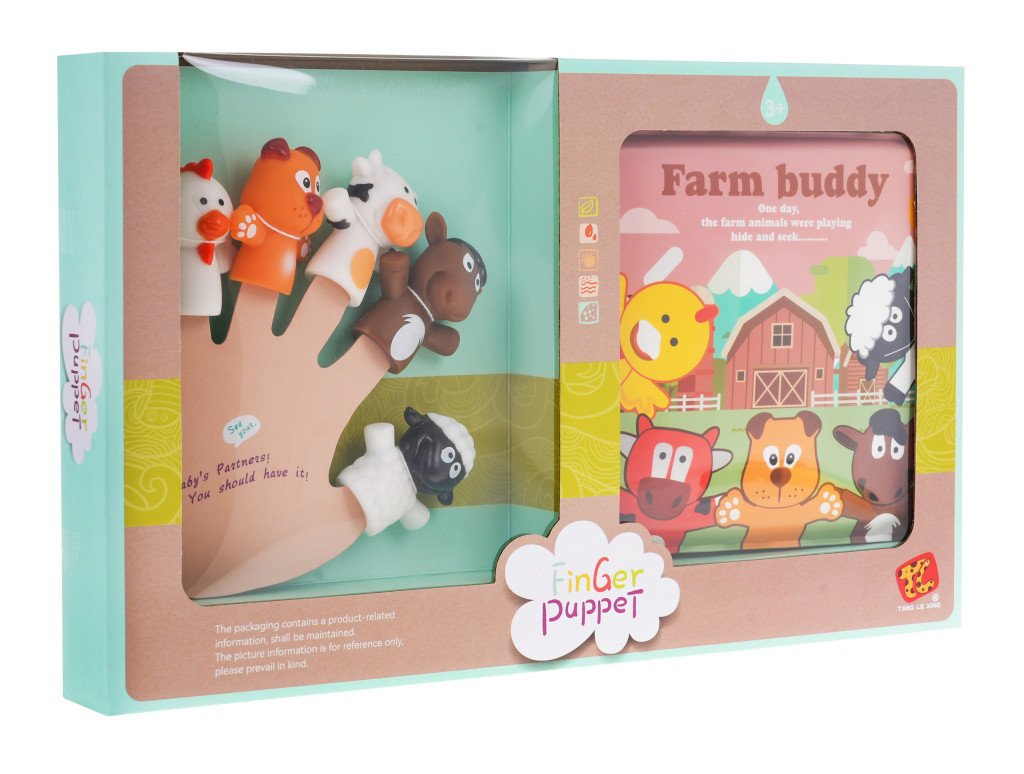 Zestaw 5 Gumowych Pacynek na palce + Książeczka Farma dla dzieci 3+ Wiejskie Zwierzątka + Wodoodporność