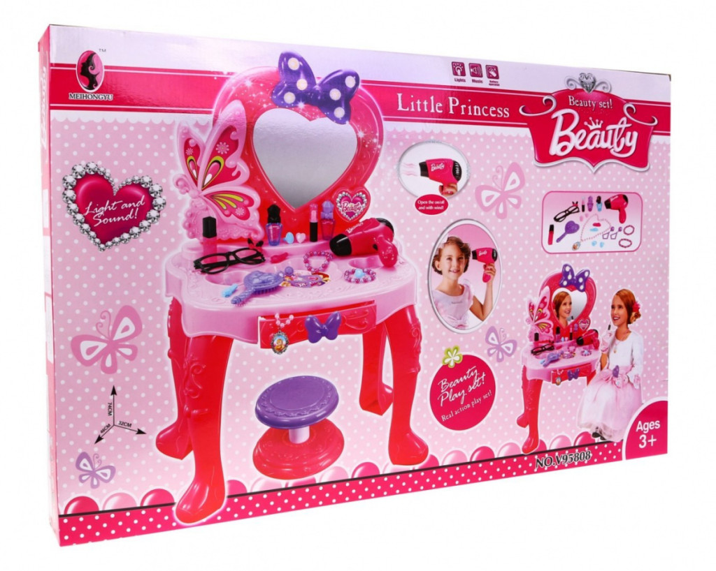 Różowa Toaletka dla dziewczynek 3+ Interaktywna suszarka + Światła + Akcesoria do stylizacji
