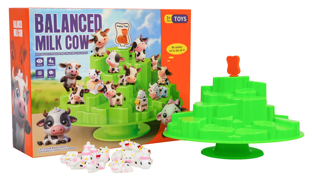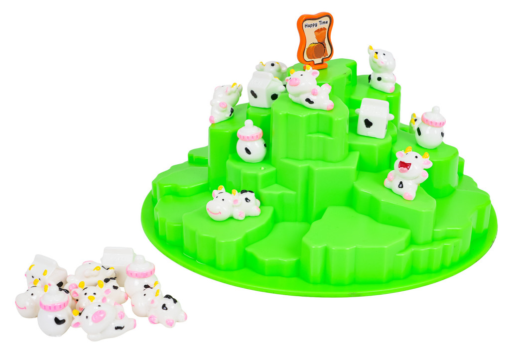 | Gra zręcznościowa balansujące krowy dla dzieci trzeciego roku życia. Zabawna gra pomoże w rozwoju zręczności i koordynacji ruchowo-wzrokowej. Zestaw wykonano z najlepszej jakości materiałów w żywych kolorach. Zabawa polega na umieszczaniu na balansującym drzewku figurek krówek, kartoników z mlekiem czy butelek, tak by zachowało równowagę i żaden element nie spadł. W zestawie znajduje się 16 figurek krówek, 4 figurki kartoników z mlekiem, 4 butelki, drzewko z podstawką oraz tabliczka z Happy Time.