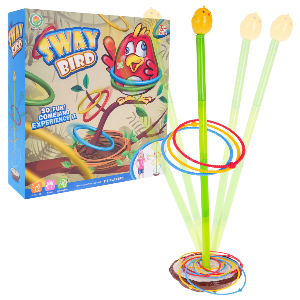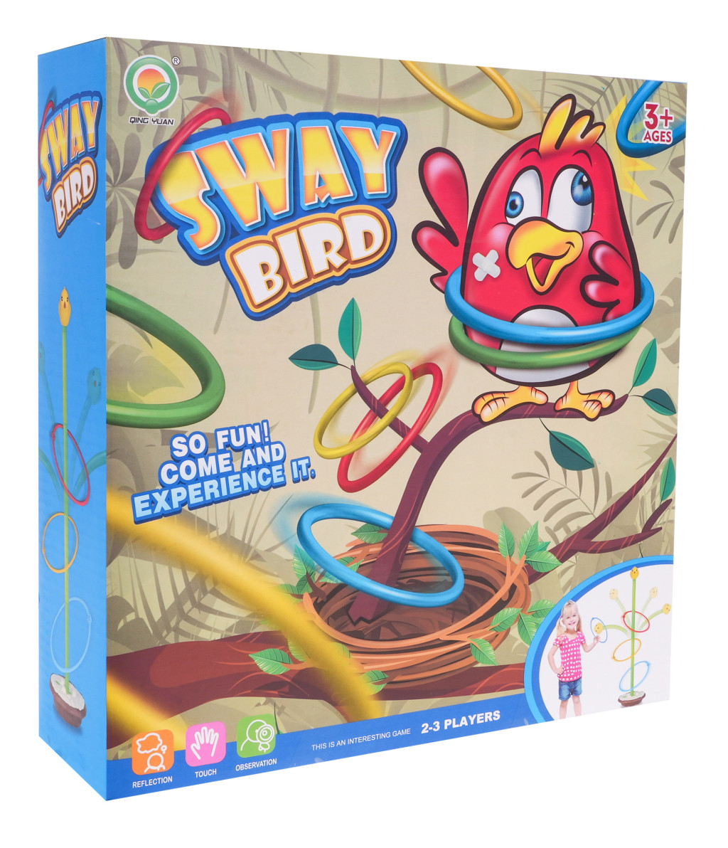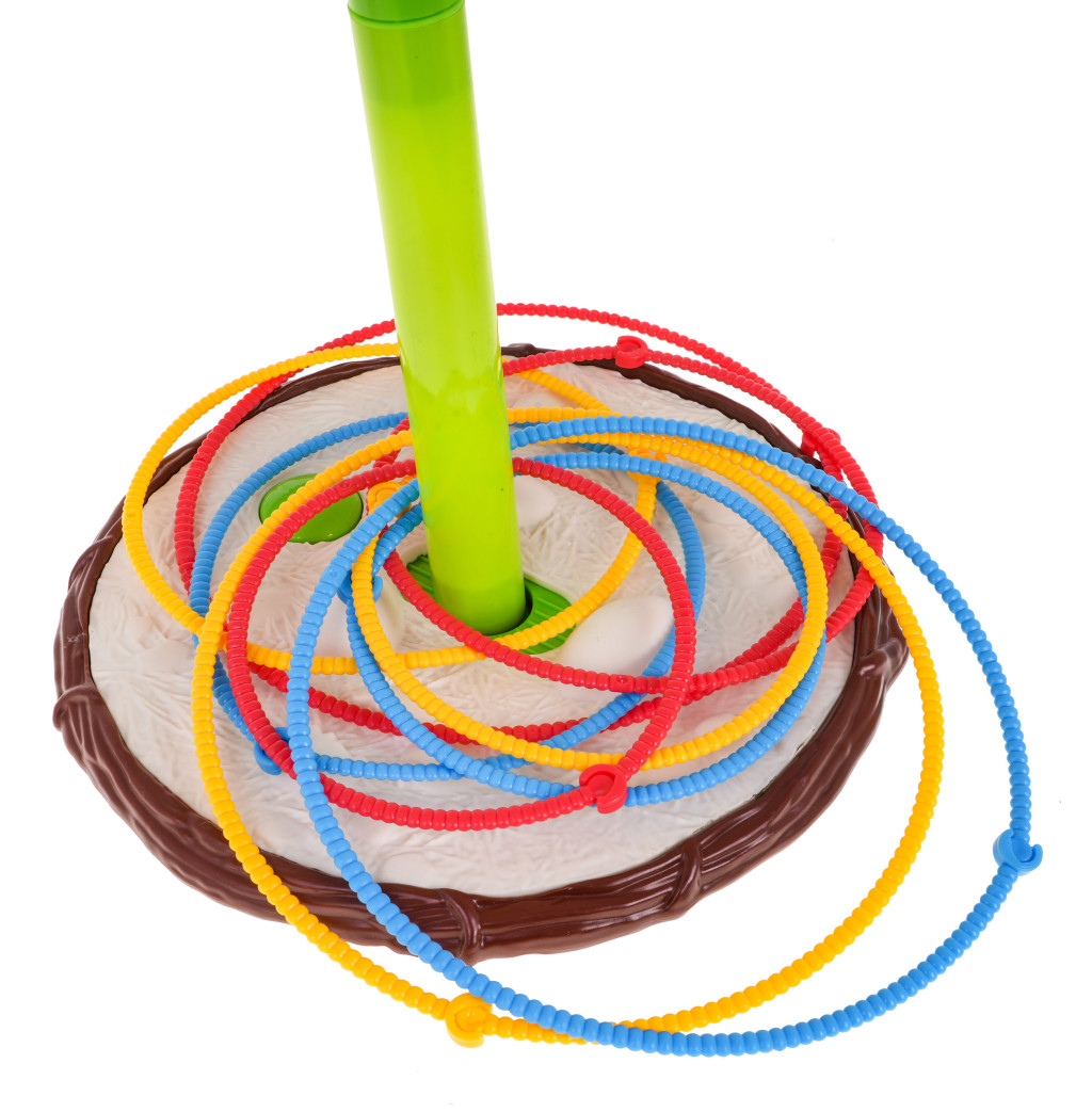| | Zręcznościowa gra Bujany Ptaszek dla dzieci od 3-go roku życia. W grę może grać dwóch lub trzech graczy. Mały ptaszek, pisklak chwieje się na gniazdku, a naszym zadaniem jest umieścić wszystkie obręcze na łodydze, wbrew pozorom nie jest to takie łatwe. Zabawka posiada 3 poziomową regulację wysokości, im wyższa łodyga, tym wyższy stopień trudności. Maksymalna wysokość łodygi to 90 cm. Można ją pomniejszać, odejmując element. Każdy element łodygi to ok. 19,5 cm. Obręcze są w trzech różnych rozmiarach, im mniejsze kółko, tym trudniej trafić. Gra rozwija refleks, koncentrację, celność i wspomaga rozwój koordynacji wzrokowo-ruchowej. Gra zasilana jest bateriami 2 x C (R14) 1,5V, których brak jest w zestawie. Zasady gry: - należy złożyć łodygę, na której znajduje się pisklak i umieścić ją na podstawie, - każdy gracz musi stać w takiej samej odległości od zabawki, - każdy z graczów otrzymuje obręcze w wybranym przez siebie kolorze, - wrzucamy naprzemiennie obręcze na łodygę, - osoba, która pierwsza umieści wszystkie swoje obręcze na łodydze, wygrywa. |