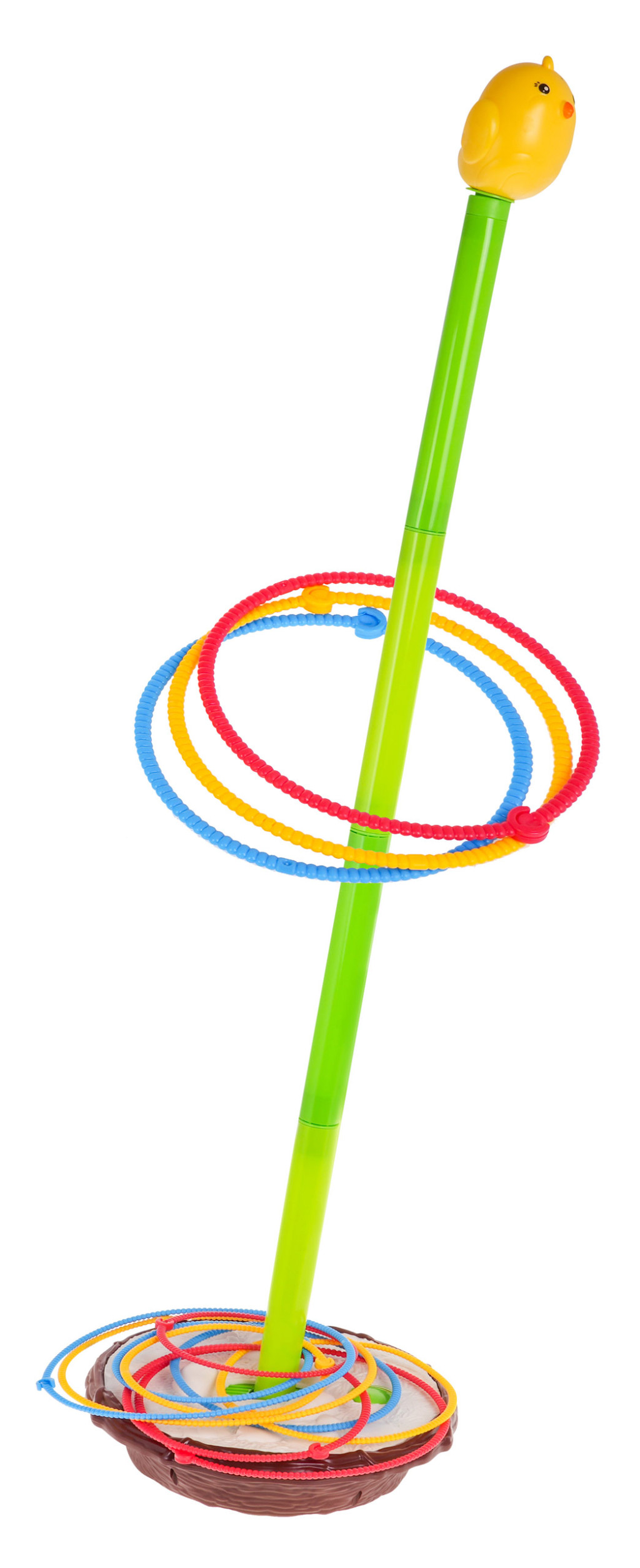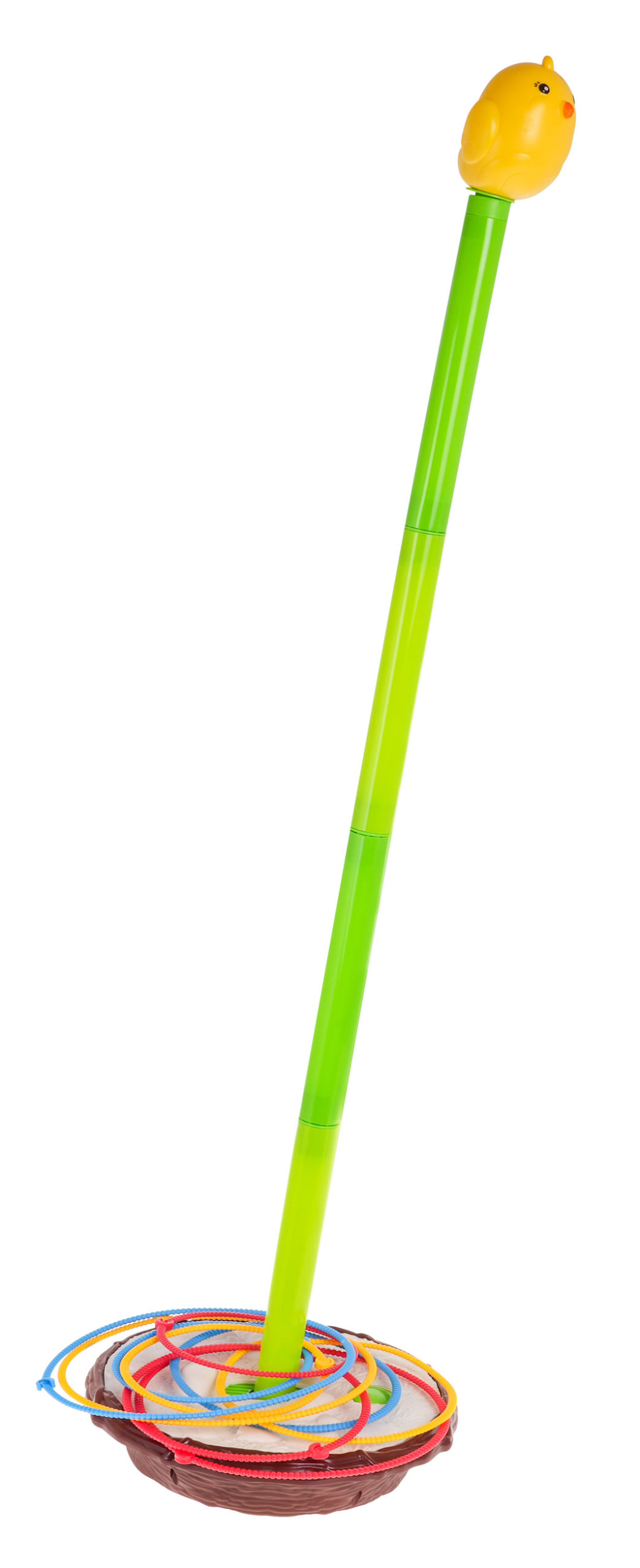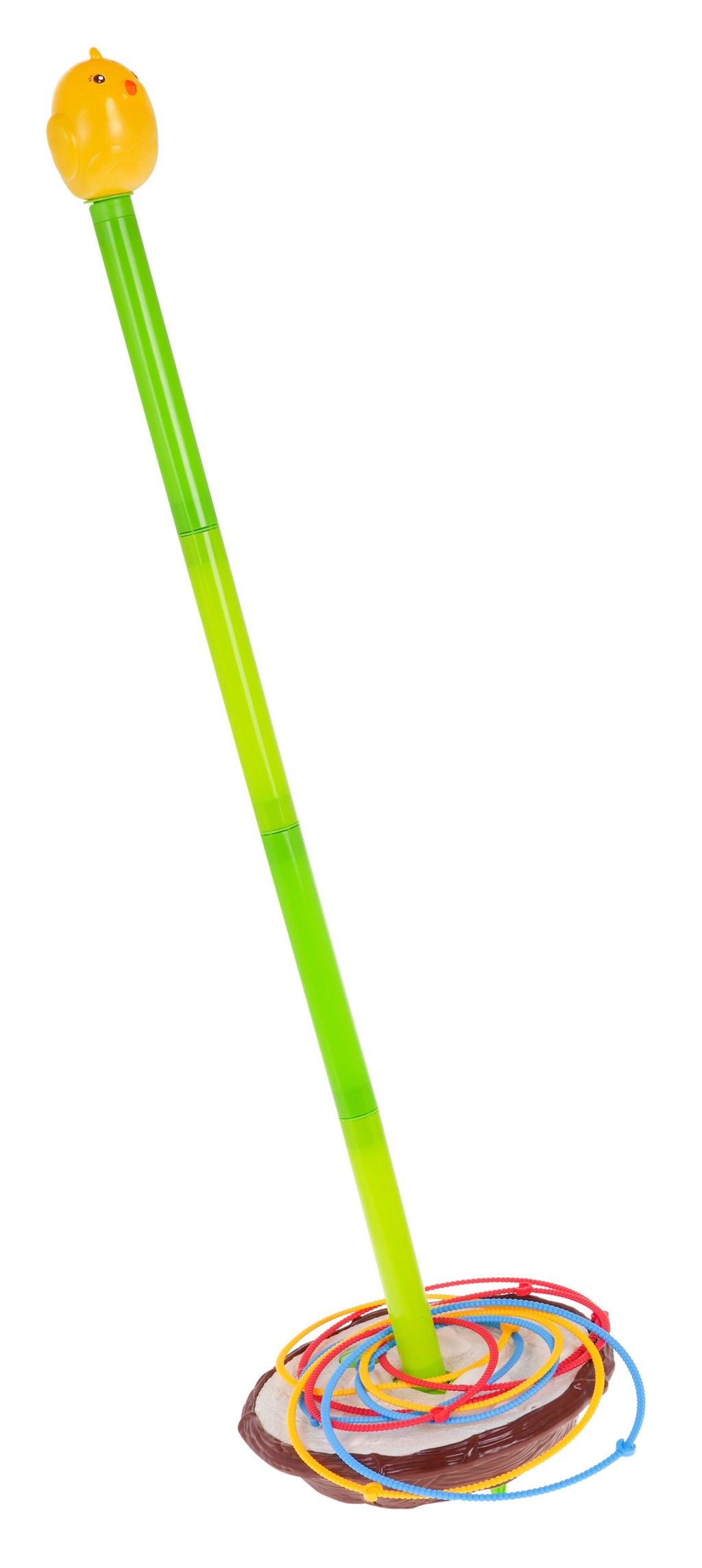 | | Zręcznościowa gra Bujany Ptaszek dla dzieci od 3-go roku życia. W grę może grać dwóch lub trzech graczy. Mały ptaszek, pisklak chwieje się na gniazdku, a naszym zadaniem jest umieścić wszystkie obręcze na łodydze, wbrew pozorom nie jest to takie łatwe. Zabawka posiada 3 poziomową regulację wysokości, im wyższa łodyga, tym wyższy stopień trudności. Maksymalna wysokość łodygi to 90 cm. Można ją pomniejszać, odejmując element. Każdy element łodygi to ok. 19,5 cm. Obręcze są w trzech różnych rozmiarach, im mniejsze kółko, tym trudniej trafić. Gra rozwija refleks, koncentrację, celność i wspomaga rozwój koordynacji wzrokowo-ruchowej. Gra zasilana jest bateriami 2 x C (R14) 1,5V, których brak jest w zestawie. Zasady gry: - należy złożyć łodygę, na której znajduje się pisklak i umieścić ją na podstawie, - każdy gracz musi stać w takiej samej odległości od zabawki, - każdy z graczów otrzymuje obręcze w wybranym przez siebie kolorze, - wrzucamy naprzemiennie obręcze na łodygę, - osoba, która pierwsza umieści wszystkie swoje obręcze na łodydze, wygrywa. |