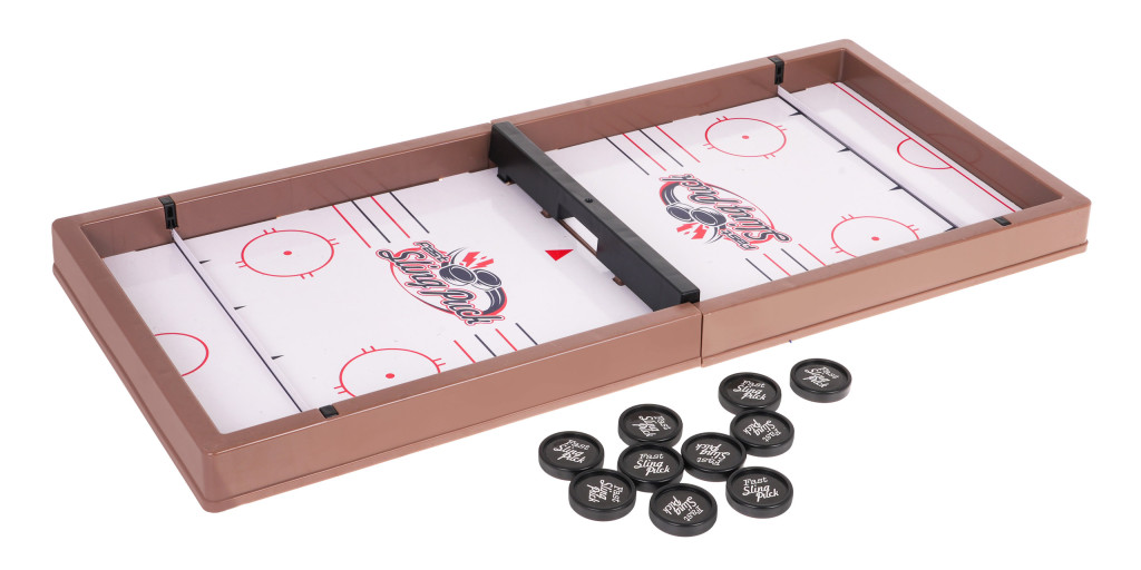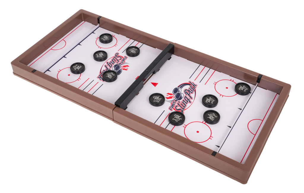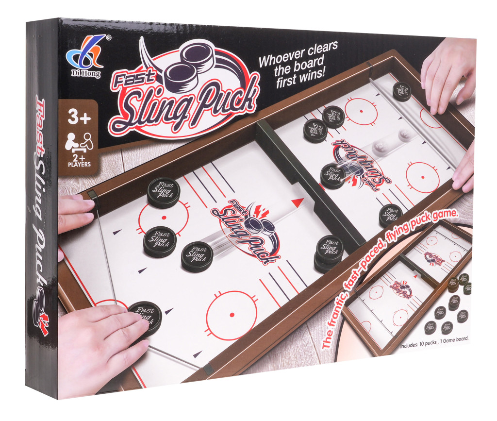 Hoket to gra zręcznościowa prosta i wciągająca, odpowiednia dla dzieci już od 3-go roku życia. Gra składa się z planszy oraz krążków. Plansza podzielona została na dwa pola rozdzielone poprzeczką, w której znajduje się otwór. Zawodnicy stają naprzeciwko siebie przy planszy. Każdy otrzymuje po pięć krążków, które rozkłada dowolnie na swojej stronie planszy. Należy wystrzelić swoje krążki w otwór w poprzeczce i umieścić je na polu przeciwnika. Wystrzeliwanie odbywa się za pomocą gumek rozciągniętych na przeciwległych końcach planszy. Gra toczy się do momentu, gdy jednemu zawodnikowi uda się wystrzelić wszystkie krążki na stronę przeciwnika. Jeżeli krążek po wystrzale wypadnie poza planszę, gracz umieszcza go na swoim polu. Zasady gry: - każdy z graczy otrzymuje po pięć krążków, - stańcie naprzeciwko siebie przy planszy, - układacie krążki na swojej stronie planszy, - za pomocą gumek rozciągniętych na przeciwległych krańcach planszy wystrzelajcie naprzemiennie swoje krążki, - jeżeli krążek wypadnie poza plansze, podnieść go i umieść po swojej stronie planszy, - grę wygrywa zawodnik, który pierwszy umieści wszystkie swoje krążki po stronie planszy przeciwnika. |