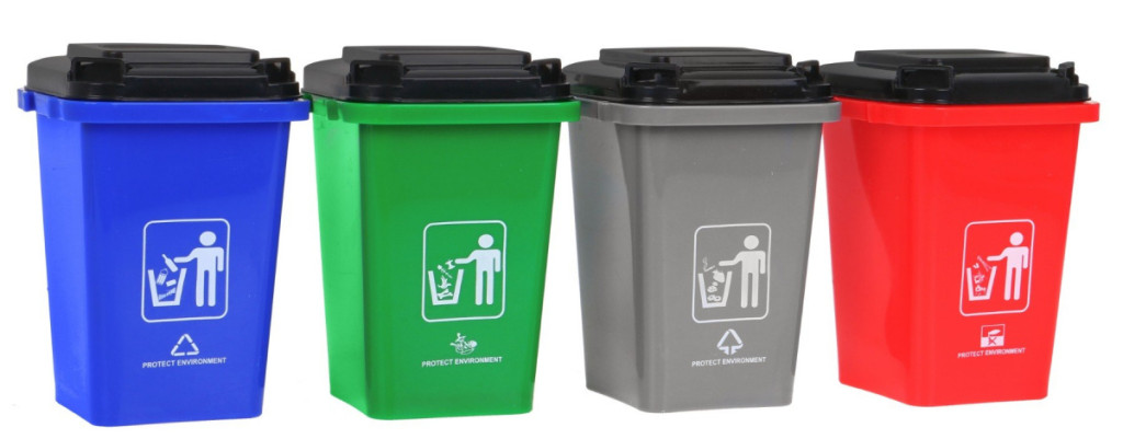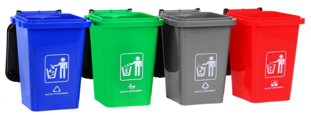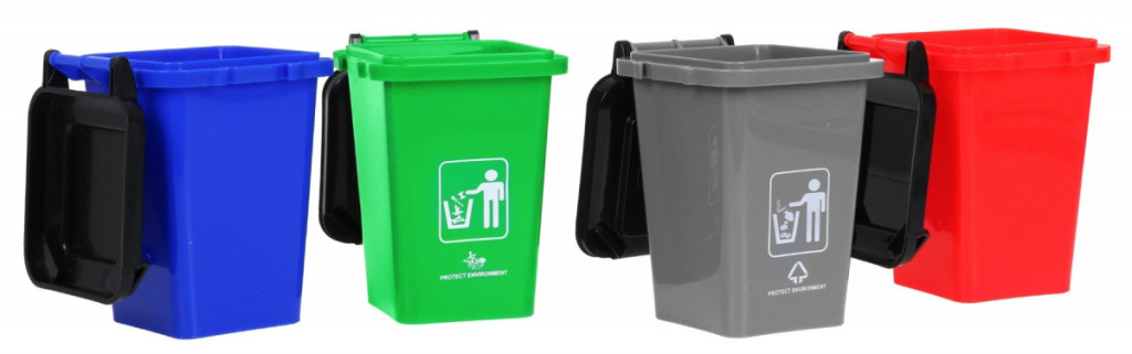 - niebieski – śmieci nadające się do recyklingu,