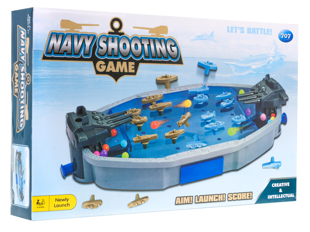 Bitwa Statków 3D dla dzieci 4+ i dorosłych Gra zręcznościowa taktyczna + Okręt z wyrzutniami + 20 Statków + 30 Kulek