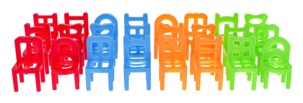 Gra zręcznościowa Krzesła MINI dla dzieci 4+ i dorosłych + 24 Krzesła 4 Kolory 6 Kształtów