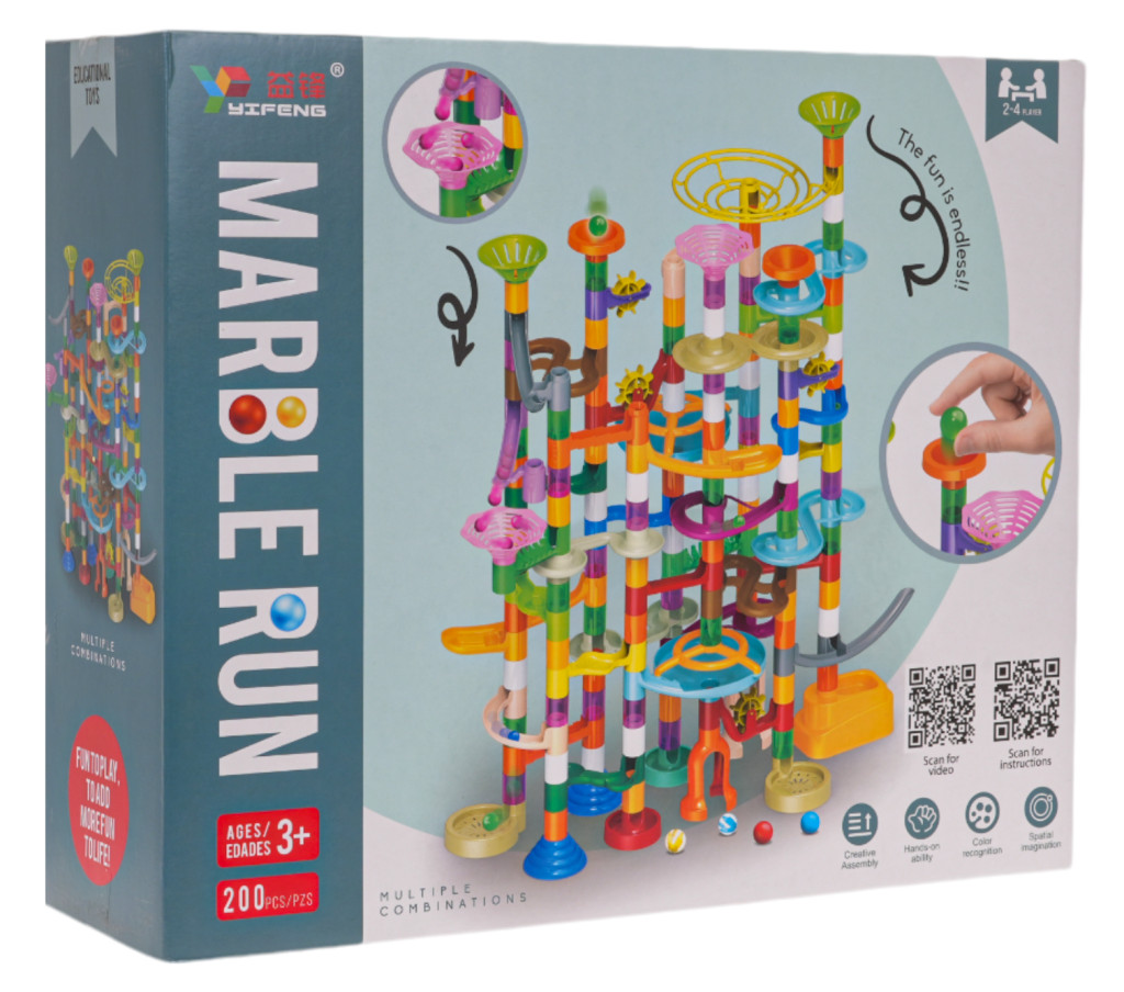 Duży, kolorowy, wytrzymały, znakomicie wykonany tor z kuleczkami to propozycja dla dzieci już od 3 – go roku życia, ale z pewnością wzbudzi zainteresowanie również starszych dzieci. Gra polega na samodzielnym zbudowaniu konstrukcji toru, a potem puszczaniu piłeczek tunelami. Można wzorować się na instrukcji obrazkowej, znajdującej się w zestawie lub stworzyć swoją własną wieżę. Puszczanie w ruch kuleczek i obserwowania jak pokonuje kręte tunele, daje mnóstwo radości, uspokaja i wycisza. Zabawka pozytywnie wpływa na rozwój kreatywności, wyobraźni i zdolności manualnych.
