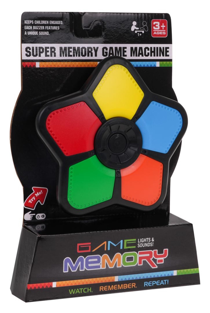 Elektroniczna, logiczna kieszonkowa gra Memory dla dzieci od 3-go roku życia. Ta popularna gra polega na powtarzaniu sekwencji wyświetlających się wcześniej kolorów. Grę rozpoczynamy po naciśnięciu dużego przycisku MEMORY znajdującego się na środku gry. Następnie komputer wskazuje – podświetla kolorowe pola, które należy odtworzyć. Z każdą sekwencją poziom trudności się zwiększa. W przypadku pomyłki słychać charakterystyczny dźwięk i grę należy rozpocząć na nowo. Dodatkowym atutem gry jest nieduża wielkość, dlatego można schować ją do kieszeni i zabrać ze sobą praktycznie wszędzie. Gra zasilana jest bateriami typu 2 x AA (baterie zostały dołączone do zestawu). Funkcje gry: - odpowiednia dla dzieci od 3-go roku życia, - wykonana z najlepszej jakości materiałów, - wersję kieszonkową, można wszędzie zabrać ze sobą, - żywe kolory przyciągają wzrok dziecka i zachęcają do zabawy, - efekty dźwiękowe i świetlne, - uczy spostrzegawczości, ćwiczy pamięć, - poprawia koordynację wzrokowo-ruchową. |