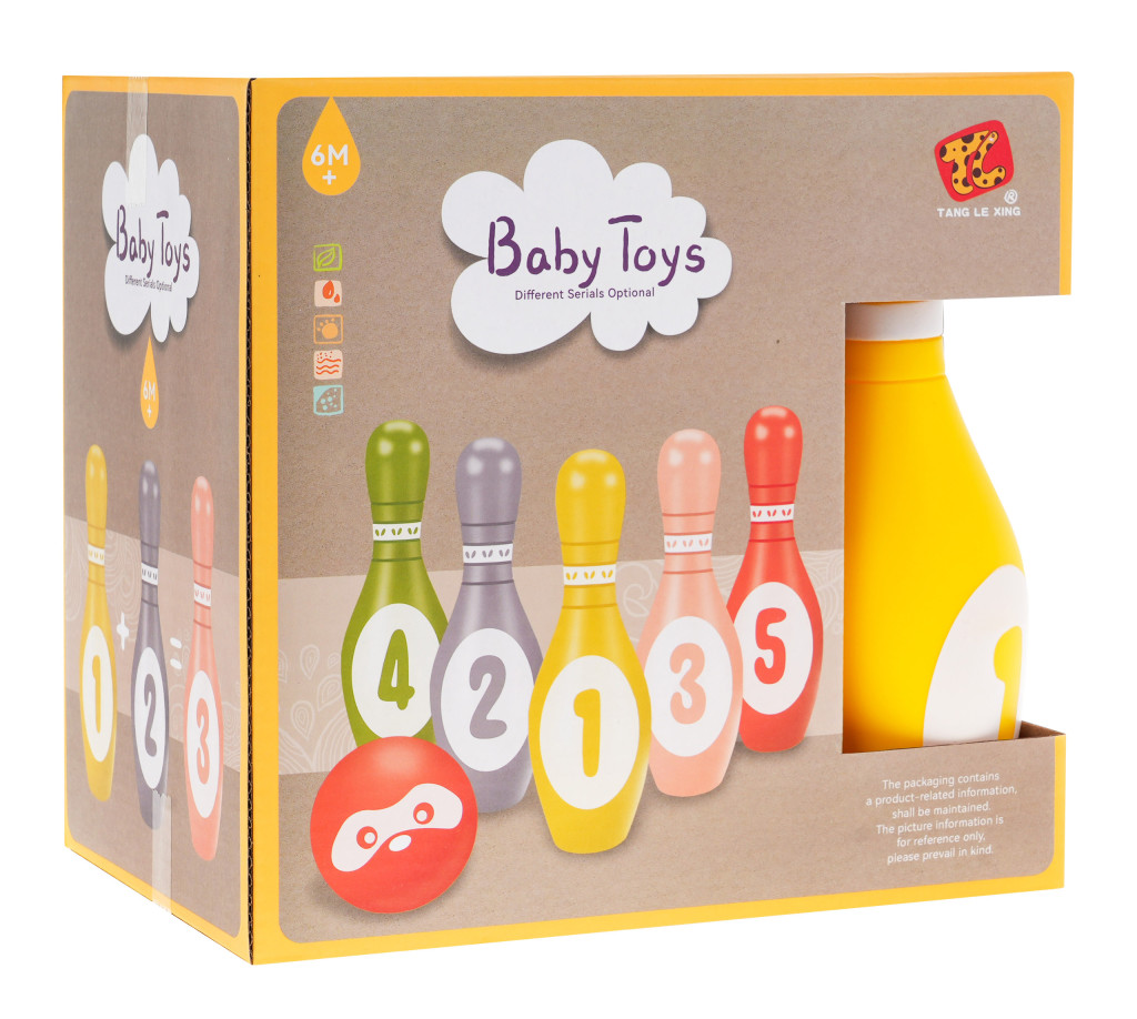 Zestaw kolorowych piankowych kręgli bezpiecznych dla maluszków już od szóstego miesiąca życia. Kręgle wykonano w przepięknych pastelowych kolorach. Na każdym z kręgli znajduje się inna cyferka od 1 do 5. Do zestawu dołączono piankową piłeczkę z buźką. Kręgle i piłkę wykonano z nietoksycznej pianki, bezpiecznej dla maluszka, a jednocześnie miękkiej i lekkiej. Zarówno piła jak i kręgle nie mają ostrych krawędzi lub zbyt małych elementów. Każdy z elementów po ściśnięciu wydaje odgłos piszczenia.