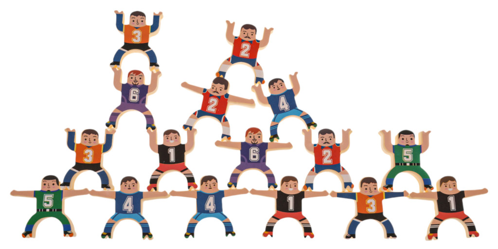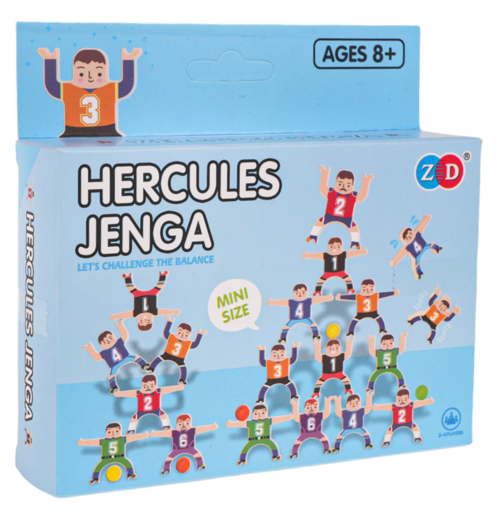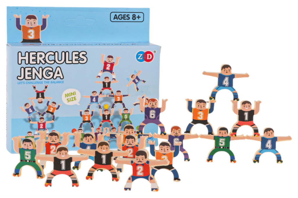 Zręcznościowa gra rodzinna, dla dzieci od 8-go roku życia i dorosłych. W grę można grać samodzielnie lub w kilku graczy. W zestawie znajduje się 16 figurek siłaczy i 9 piłeczek. Grając samodzielnie, musimy układać figurki, jedną na drugiej, tak by zbudować wysoką, stabilną wieżę. Możemy także układać figurki w rzędach poziomych, ukośnych i toczyć między nimi piłkę. Grając w kilka osób, układamy naprzemiennie i ten gracz, któremu konstrukcja się rozsypie, przegrywa. Gra ćwiczy koordynację, chwytność i motorykę. To doskonały trening umiejętności i cierpliwości.