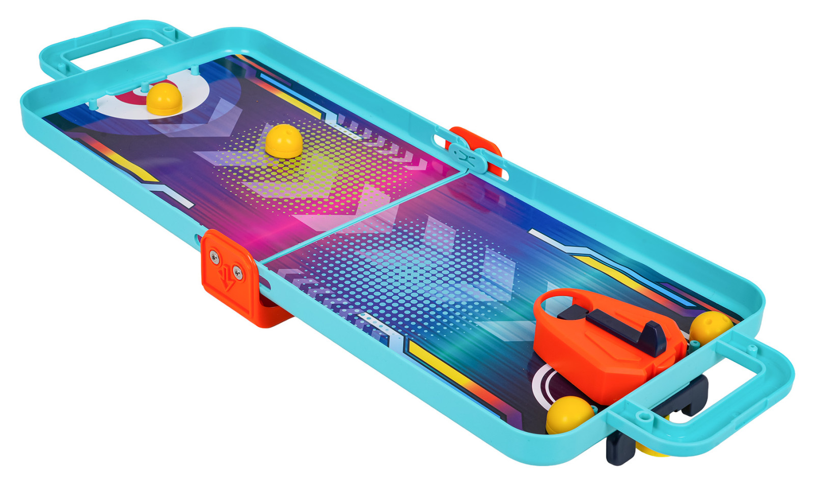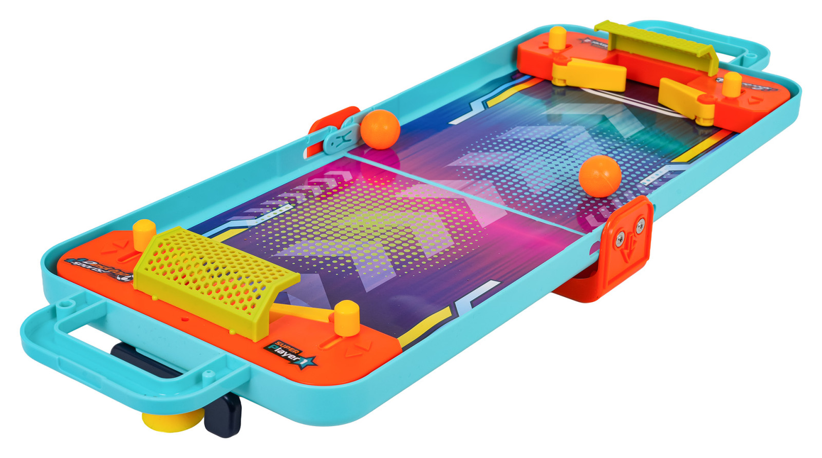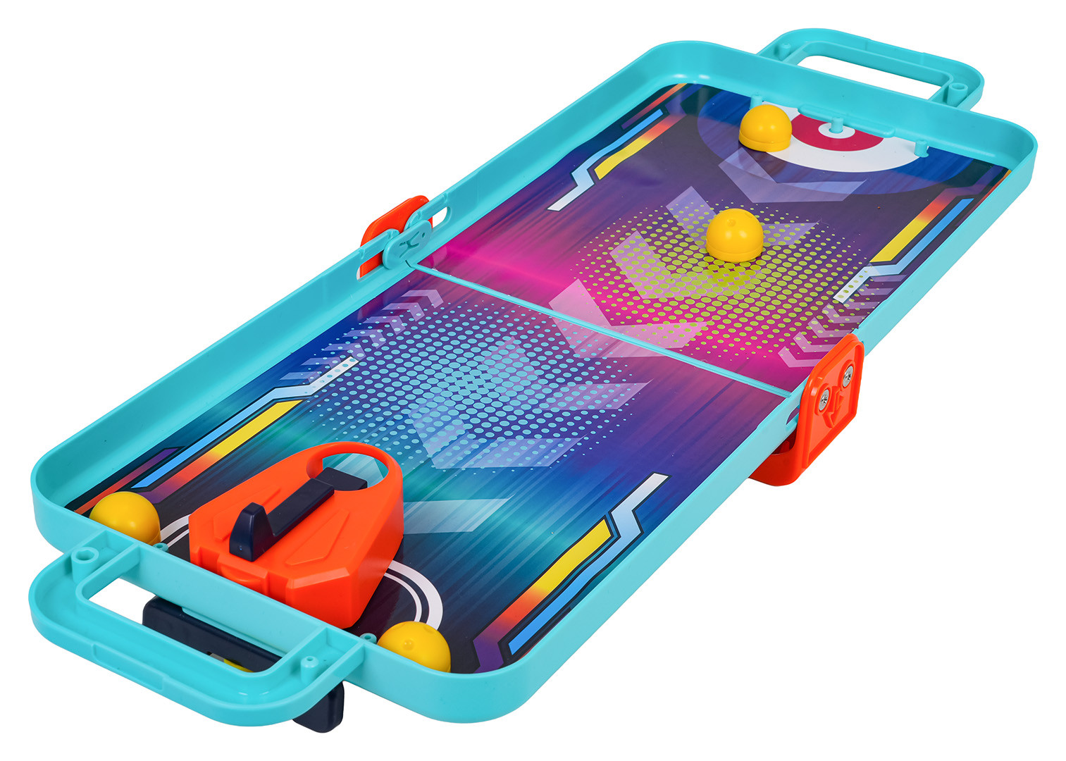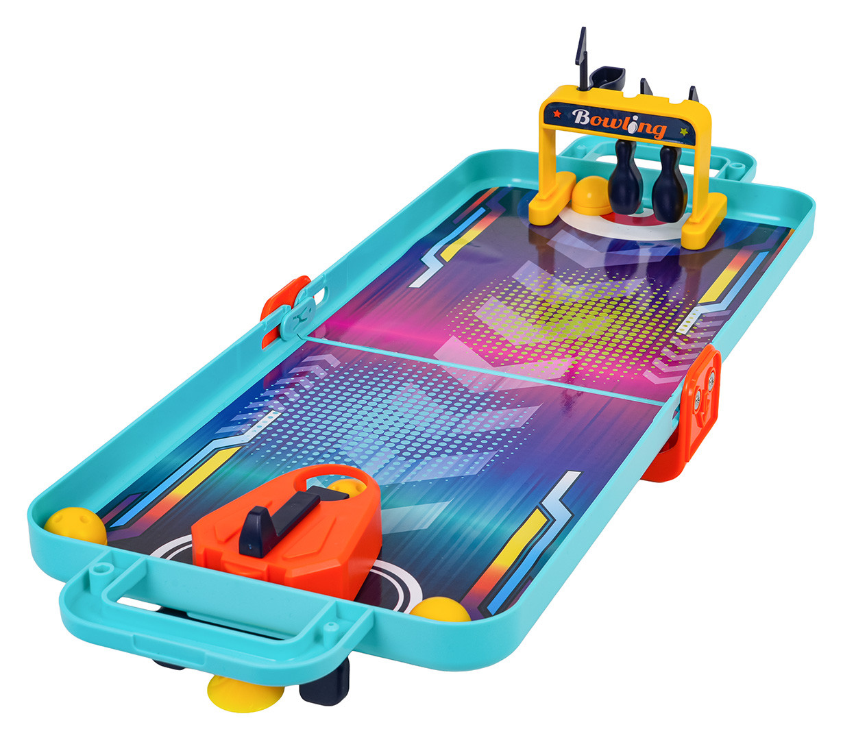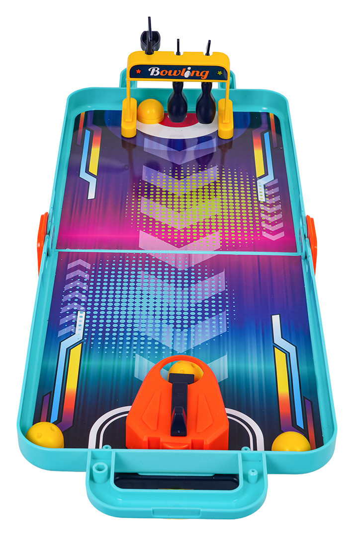 Wymiary | - plansza złożona, walizka ok. 28 cm x 19 cm x 4 cm, - plansza rozłożona ok. 52 cm x 19 cm x 5 cm, - piłeczka ok. 2,3 cm średnicy, - tablica do koszykówki z koszem ok. 10,5 cm x 6 cm x 8 cm, - bramki do flippera ok. 16,8 cm x 5,5 cm x 3 cm, - dyski ok. 2 cm x 1,5 cm, - zestaw z kręglami ok. 9 cm x 4,8 cm x 6,5 cm, - opakowanie ok. 19,5 cm x 22,5 cm x 5,5 cm. |