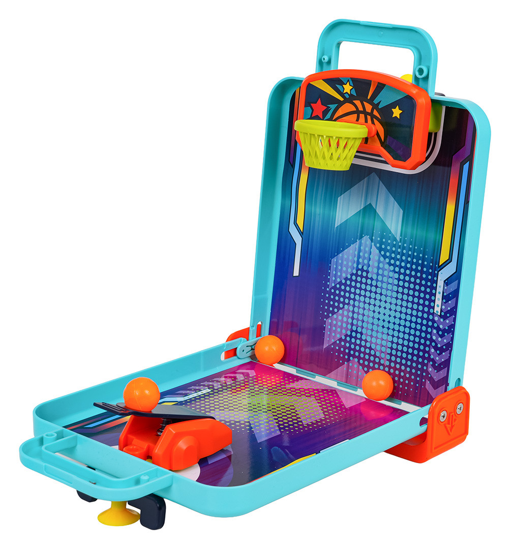 | Zestaw gier zręcznościowych 4 w 1 dla dzieci od trzeciego roku życia. Ten niewielkich rozmiarów, zaprojektowany jako kompaktowa walizka zestaw łączy w sobie aż 4 gry: cymbergaj, kręgle, koszykówka i flipper. Dzięki niewielkim gabarytom zestaw można zabrać wszędzie ze sobą i cieszyć się ekscytującą rozrywką tam, gdzie tylko chcesz. Zestaw wykonano z najlepszej jakości materiałów w żywych kolorach. Gra poprawia koordynacje wzrokowo-ruchową, koncentrację i umiejętności motoryczne.