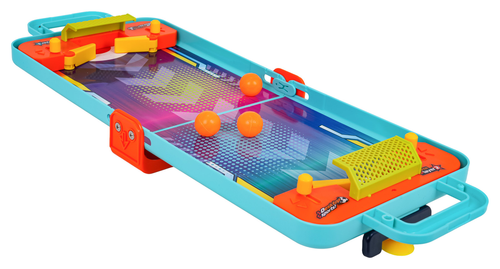 | - walizeczka, plansza do gry, - 3 x piłka, - 2 x bramka - zestaw z kręglami, - 4 x dysk, - 2 x bramka do flippera, - tablica do koszykówki, - wyrzutnia, - naklejki dekoracyjne. |