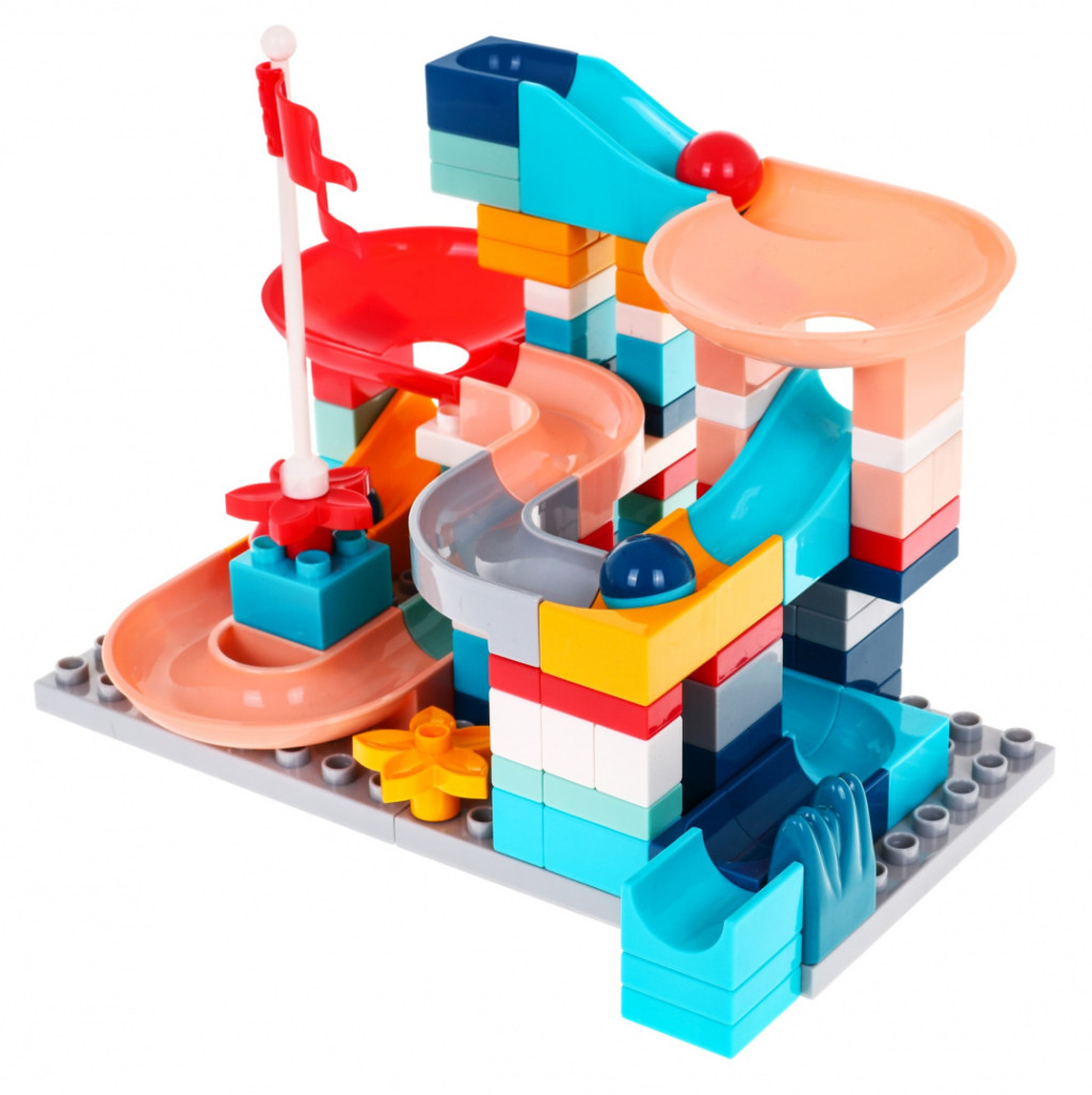 Klocki konstrukcyjne do Toru na kulki dla dzieci 3+ Zjeżdżalnie Wzniesienia Lejki + Podstawa + Akcesoria 105 el.